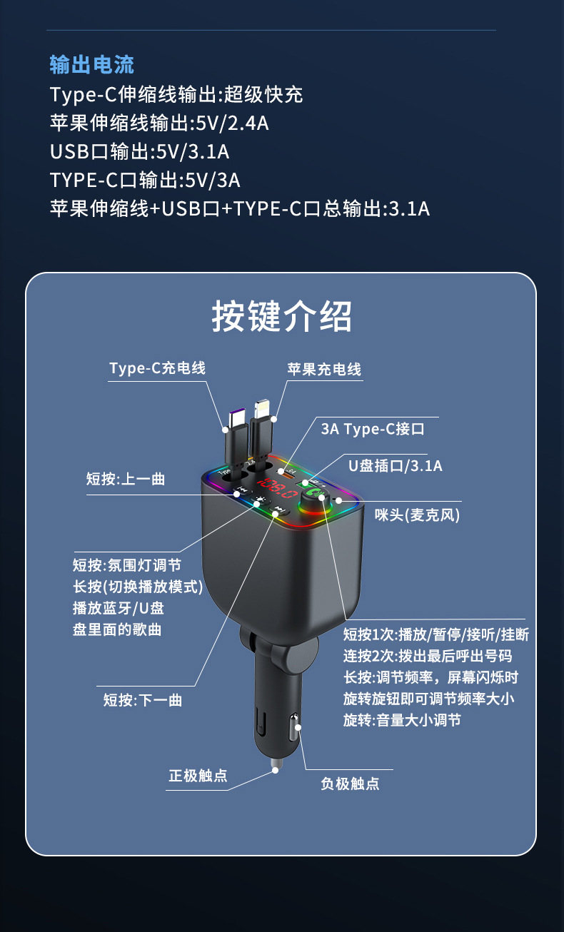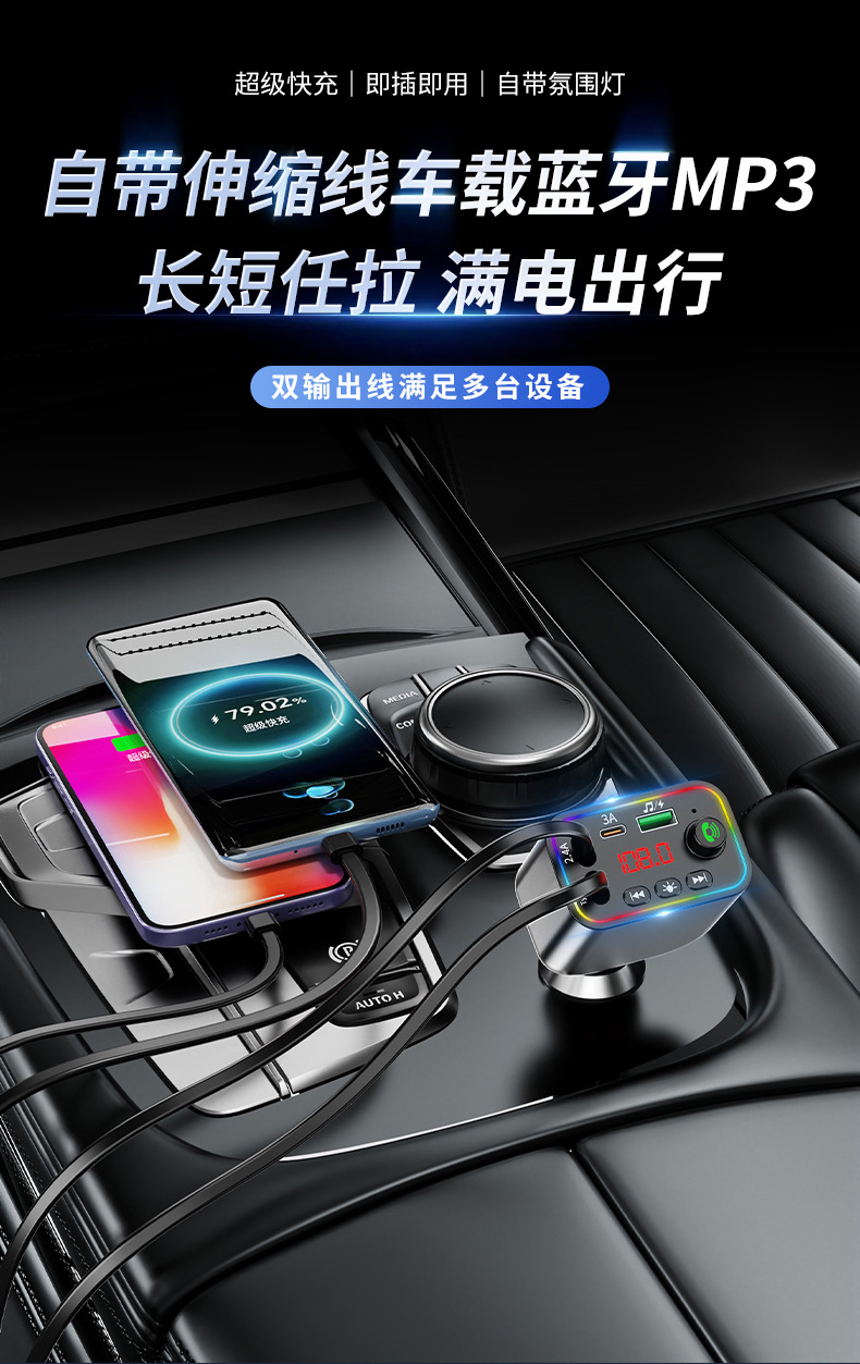 l4 super fast charge comes with flexible wire car bluetooth mp3 car charger retractable one for four car mp3
