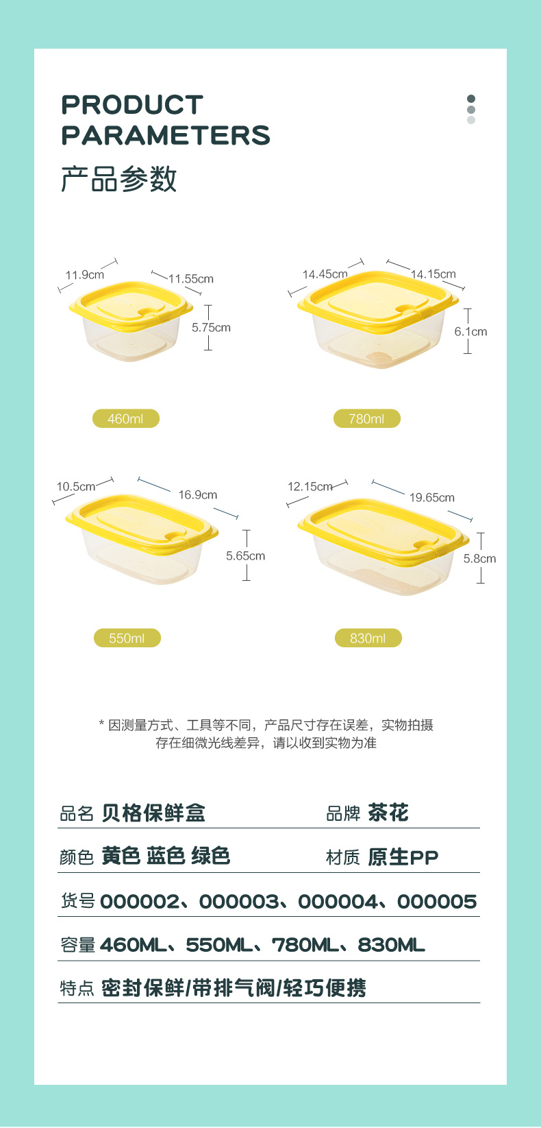 rectangular 830ml green [a group of 3 packs]]