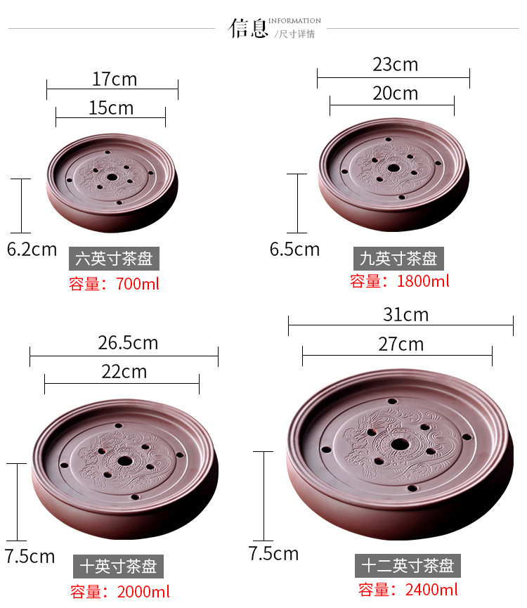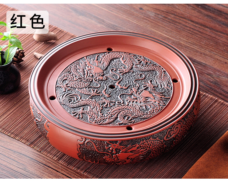 12-inch red tea tray (send tea towel six gentlemen)