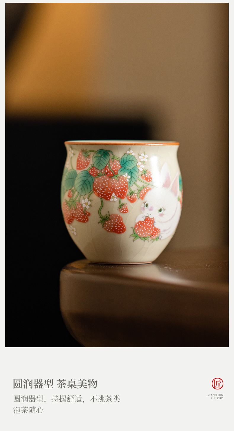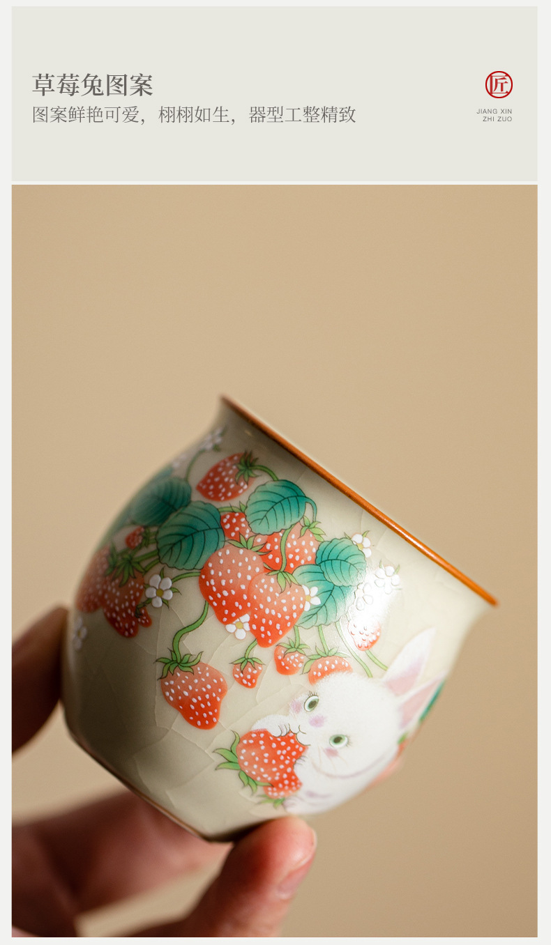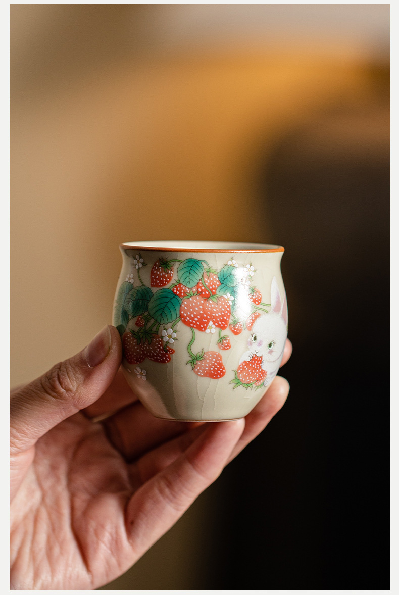 beige ru ware strawberry rabbit eggcup (90ml)
