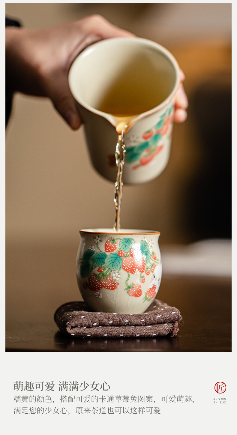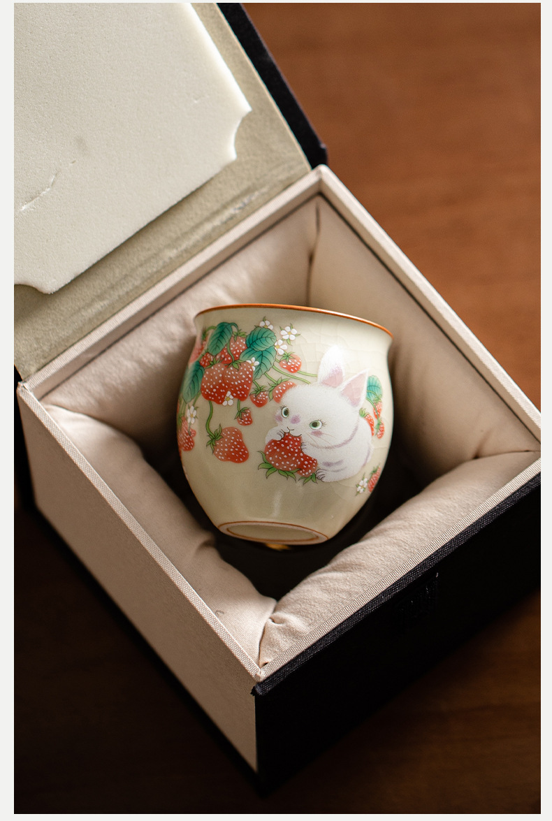 beige ru ware strawberry rabbit eggcup [gift box]]