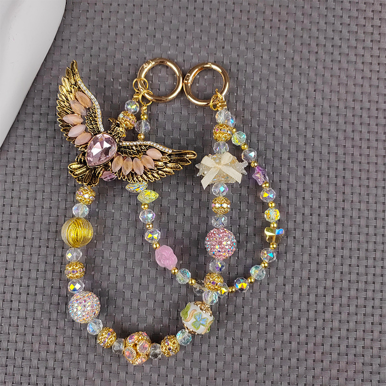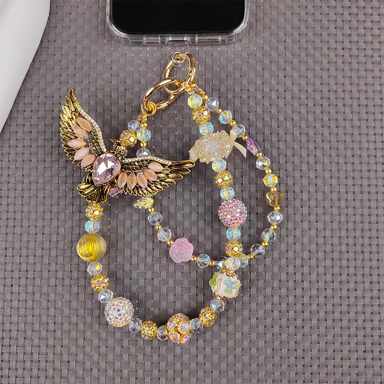 light pink + golden eagle mobile phone charm