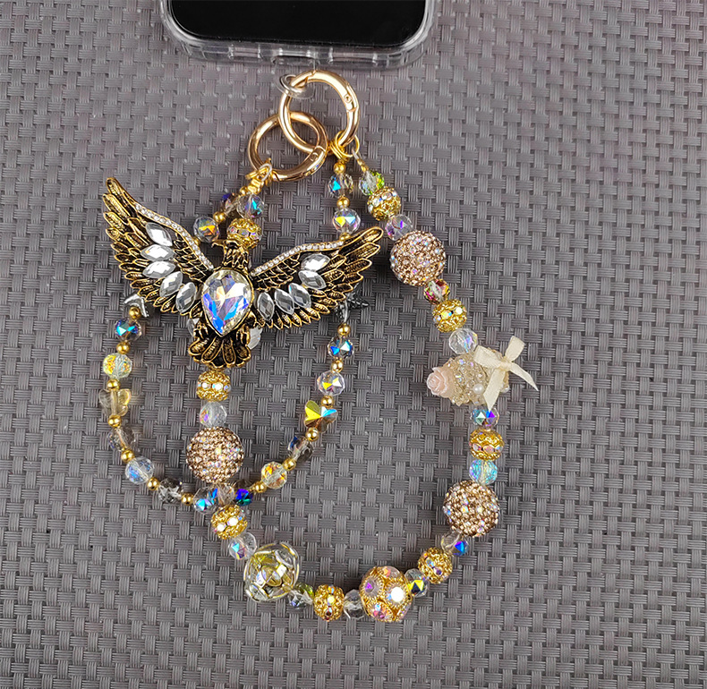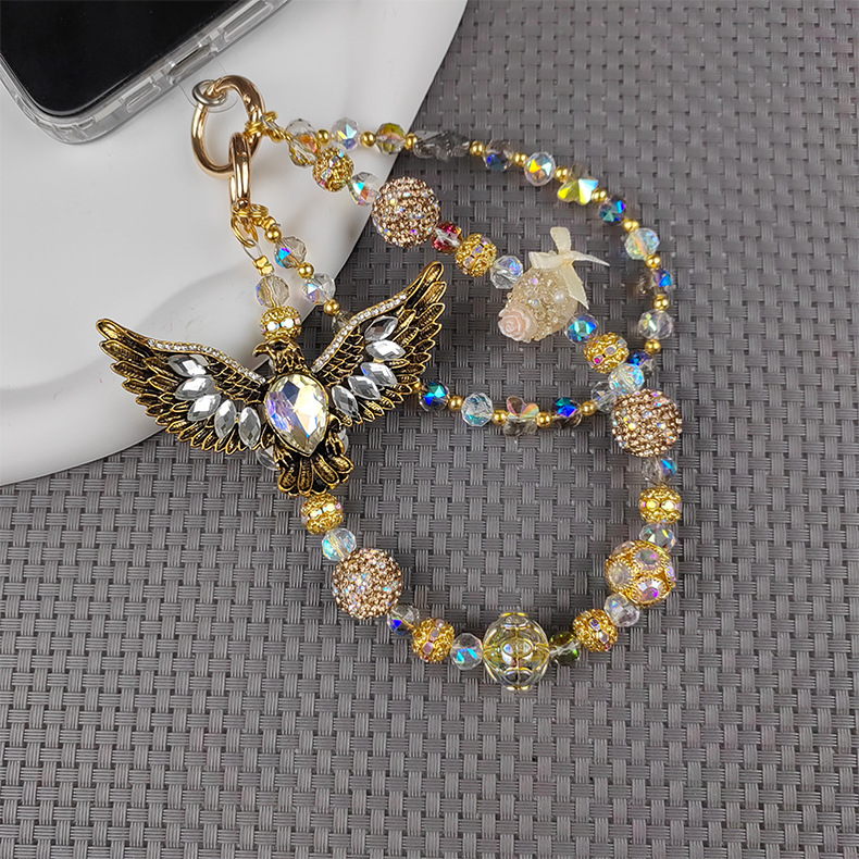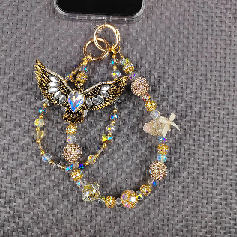 white + golden eagle mobile phone charm