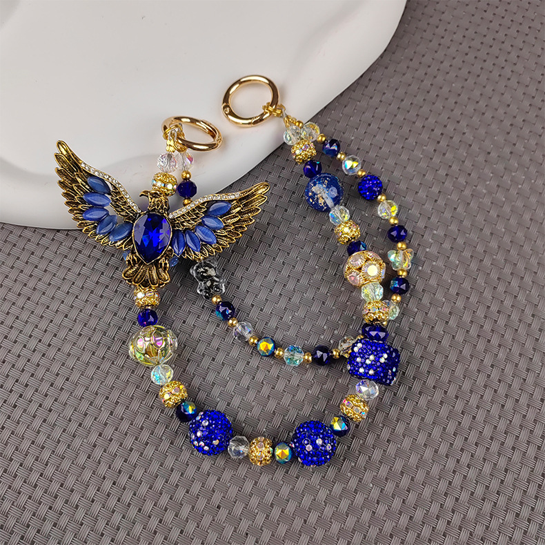 blue + golden eagle mobile phone charm
