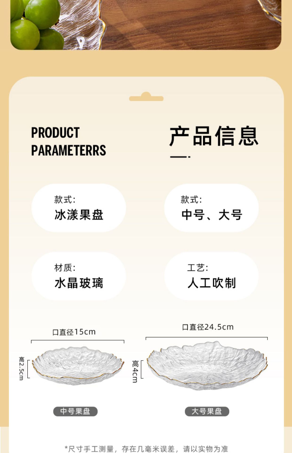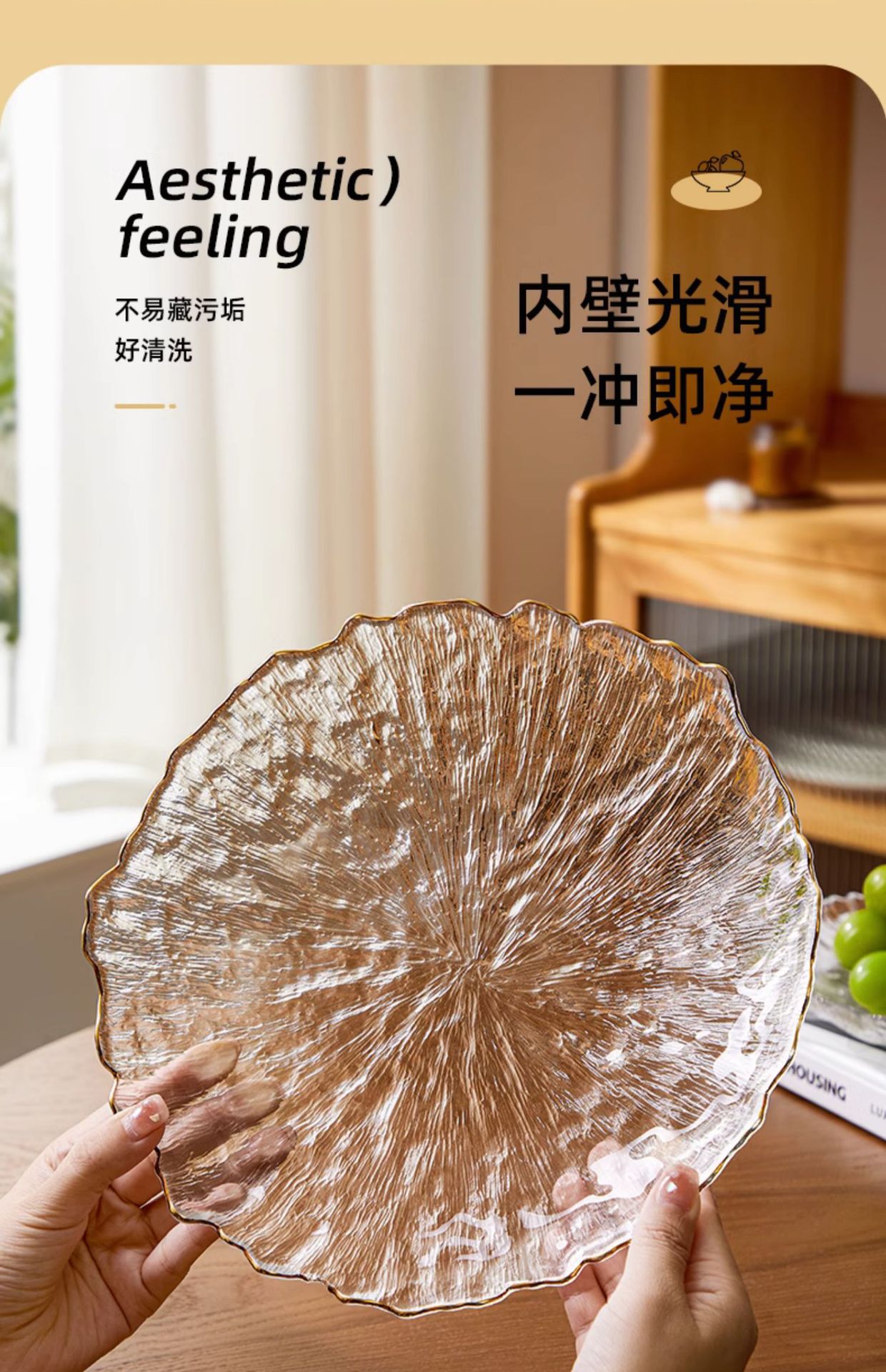 gold painting transparent/large fruit plate