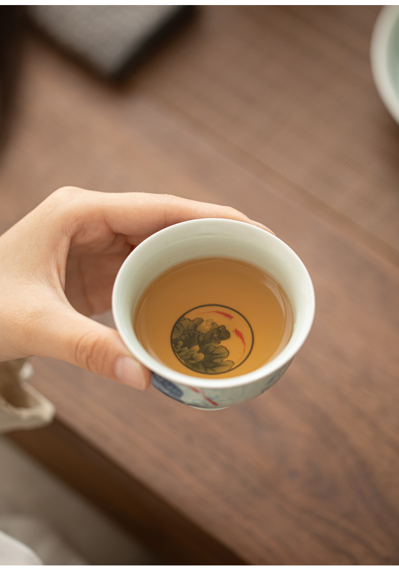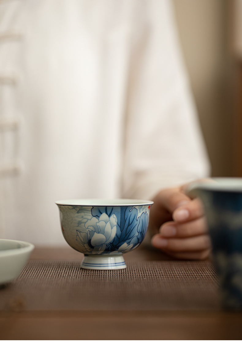 blue and white-high foot master cup [lotus fun]]