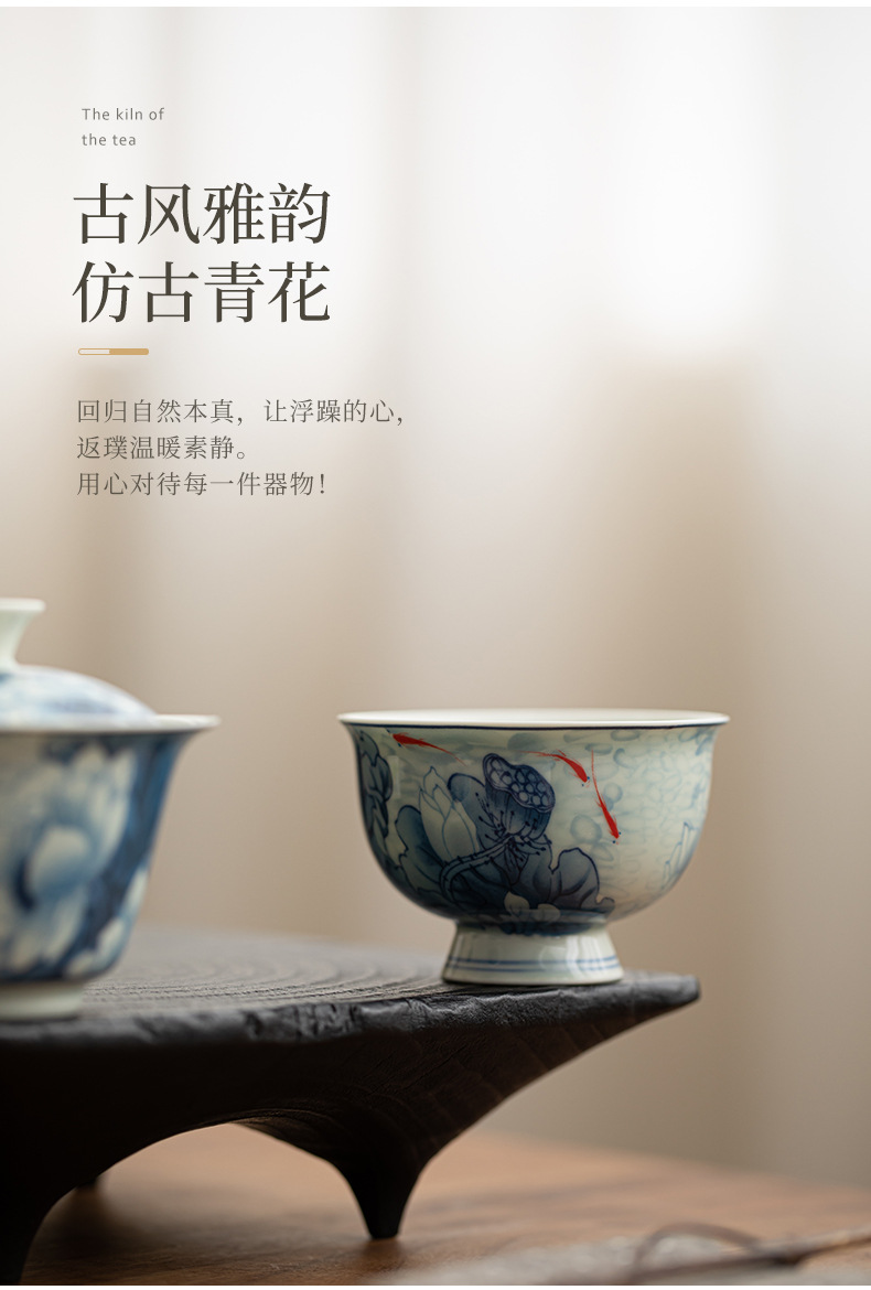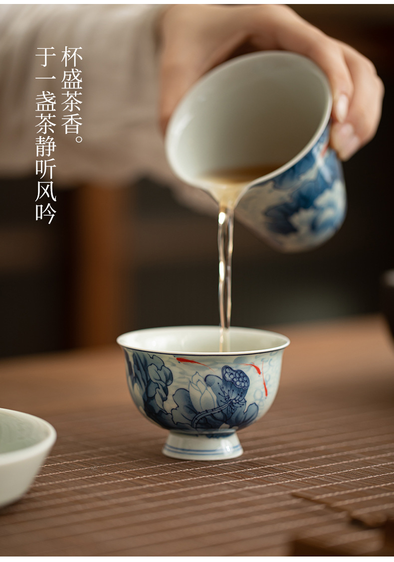 blue and white-high foot master cup [lotus fun] gift box