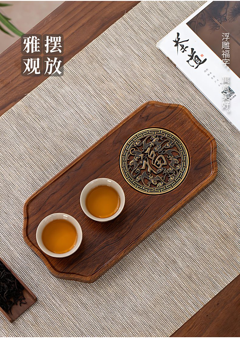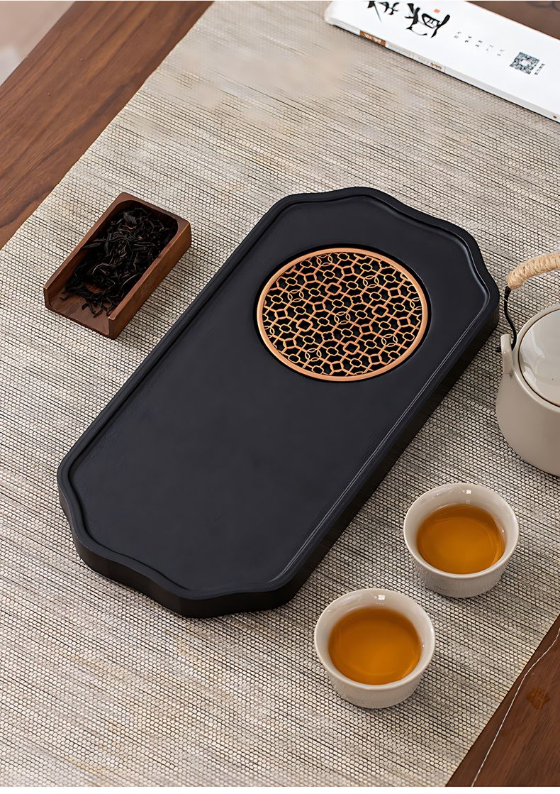 black fu character bamboo tea tray
