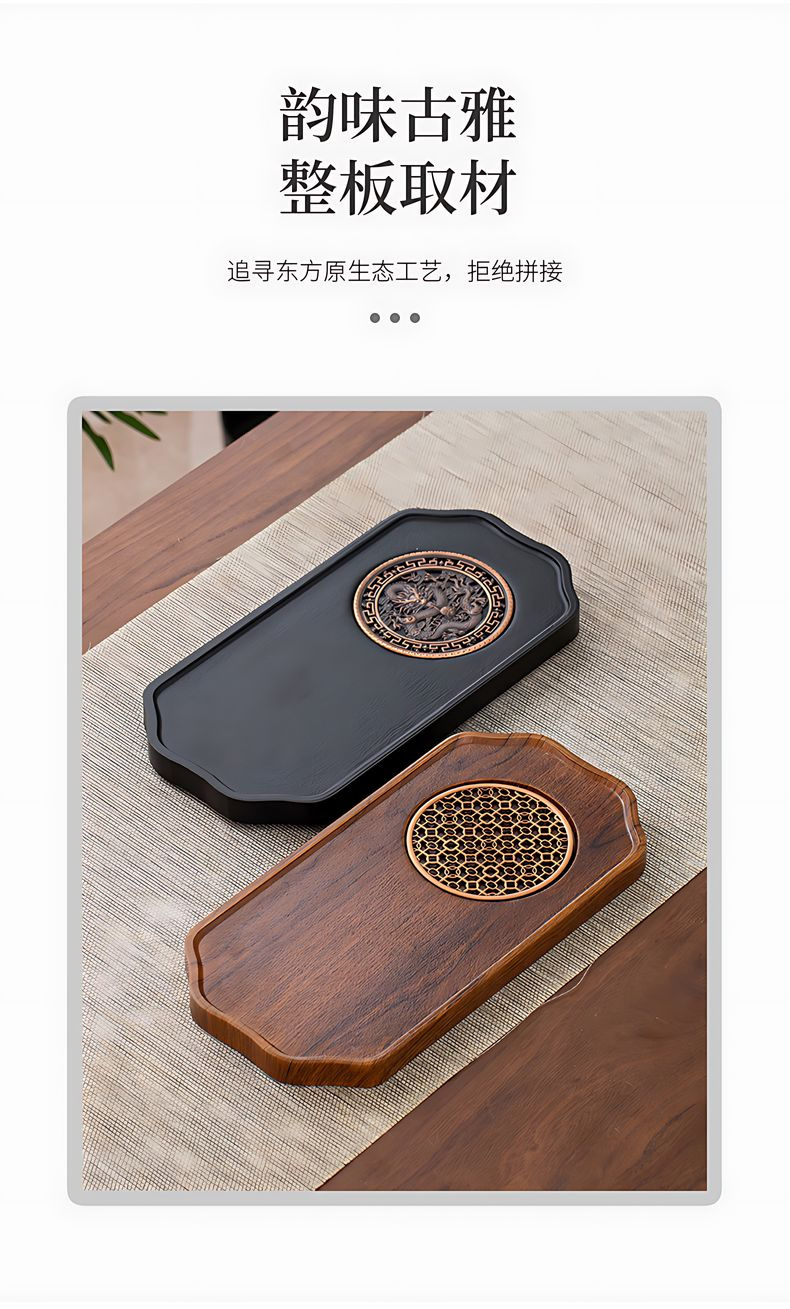 brown auspicious dragon bamboo tea tray