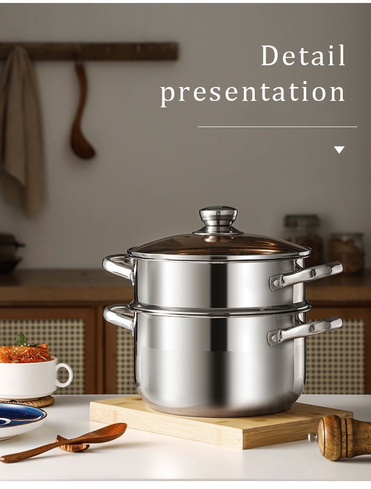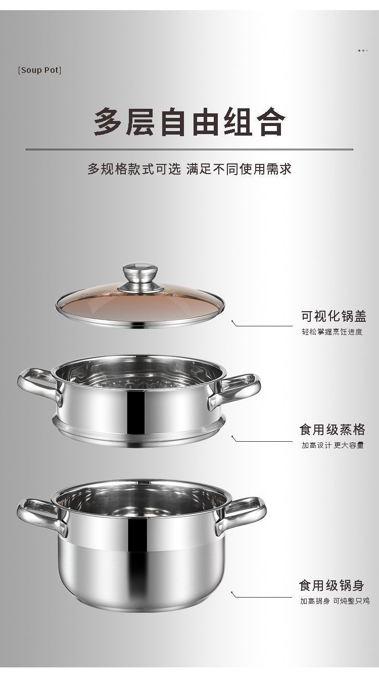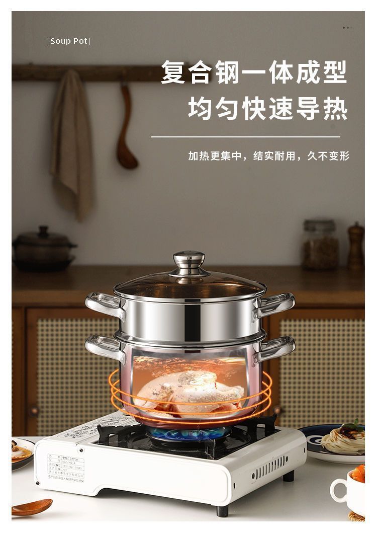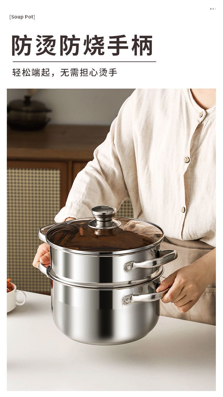 24cm extra thick double-layer soup pot [with brown glass cover + grid]]