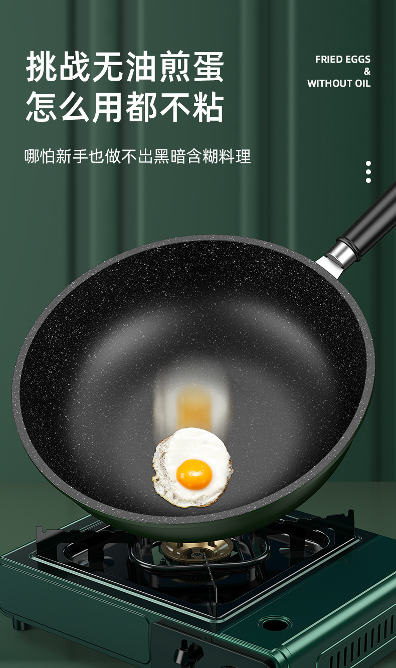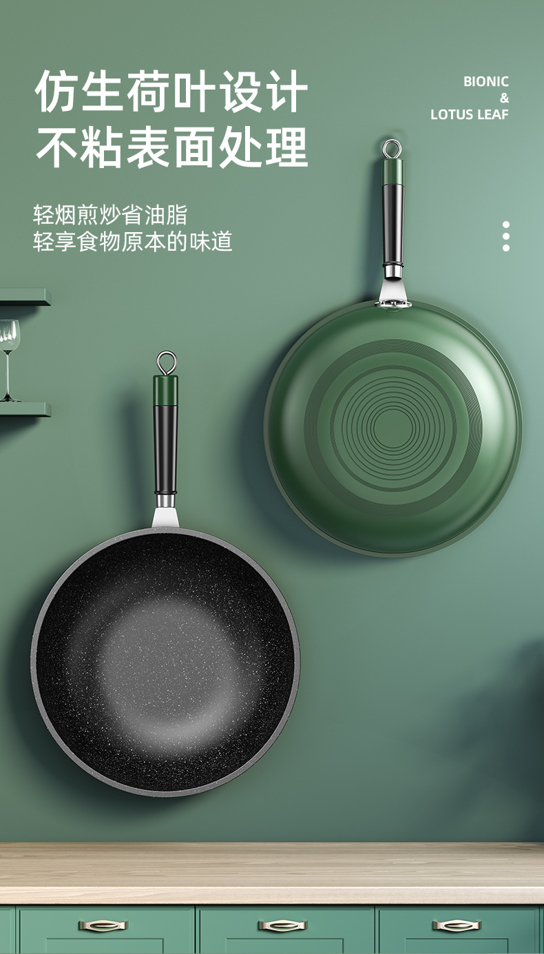 dark green 30cm wok + stand cover + wooden turner + spong mop