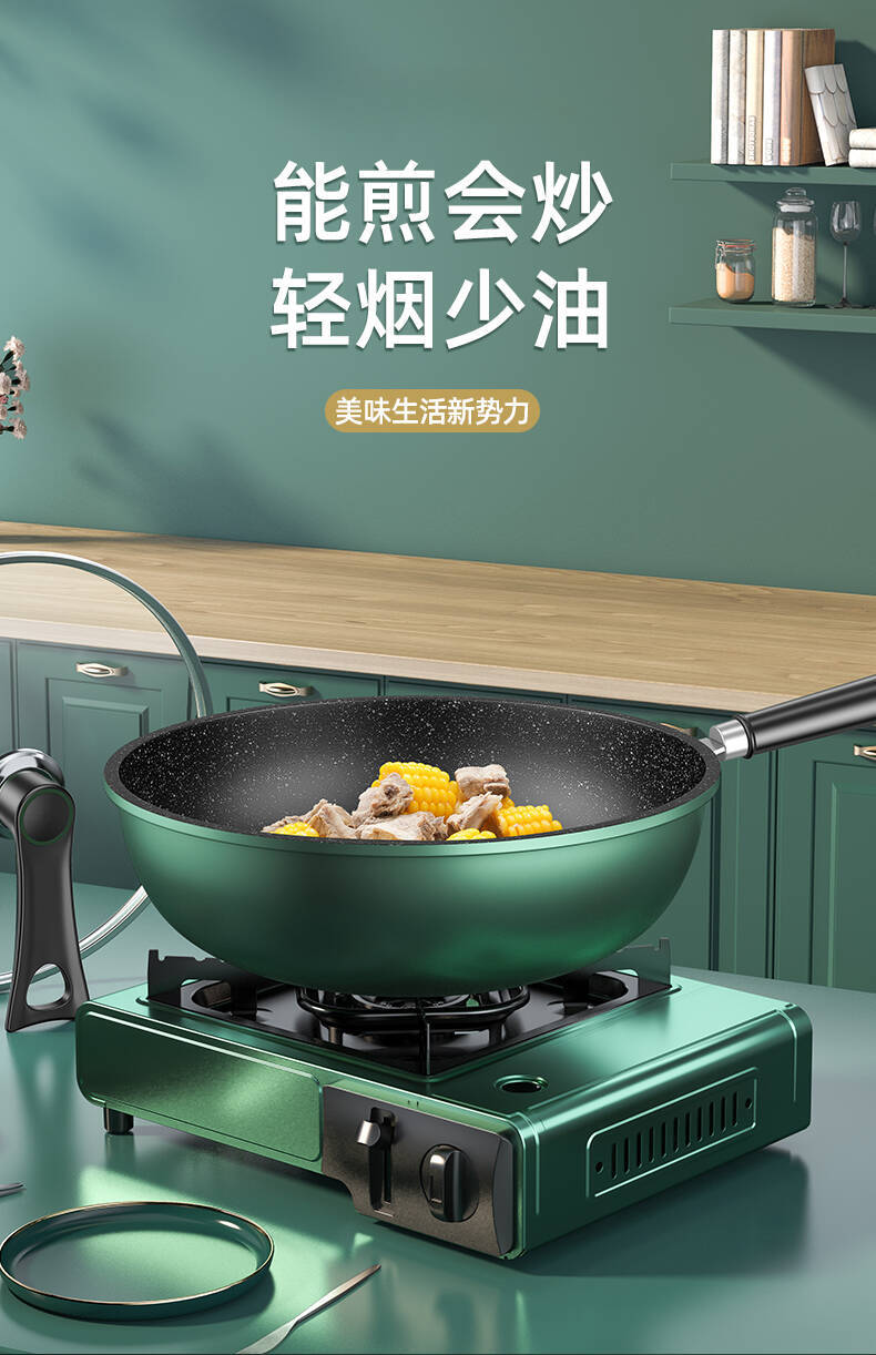 dark green 34cm wok + stand cover + wooden turner + spong mop