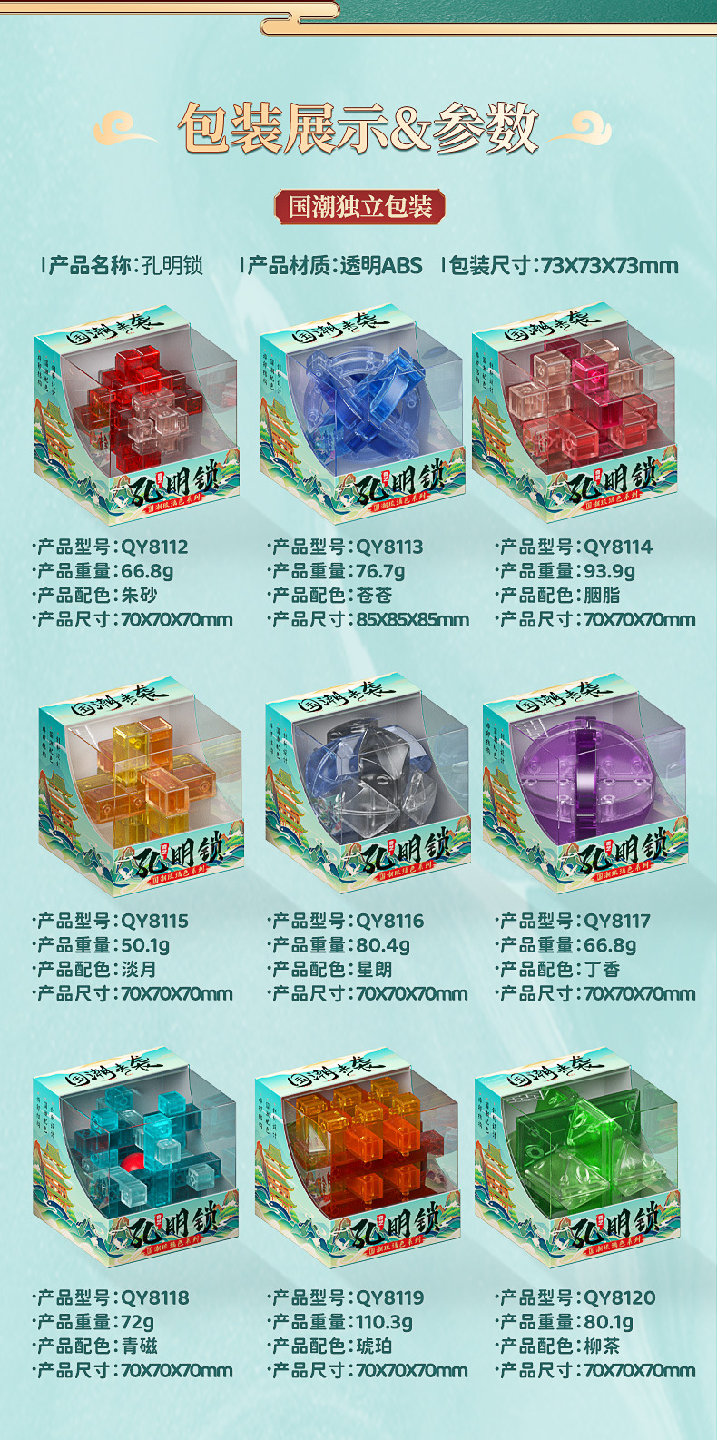 burr puzzle-qy8137 six second generation (emerald blue)