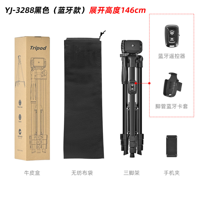 yj-3288 black aluminum tube 1.46 m + color box + non-woven bag + regular e clip
