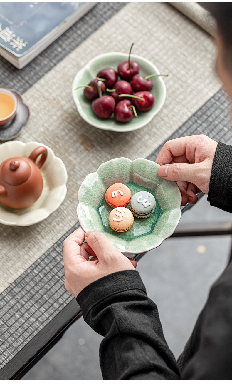dy-ge kiln ice crack tea cake tray [green beans]