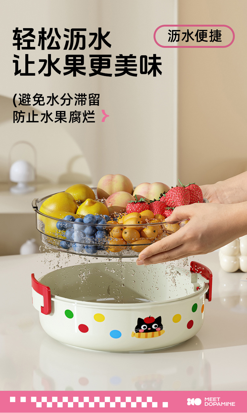 cream white-polka dot cat [dustproof with cover/double drain]]