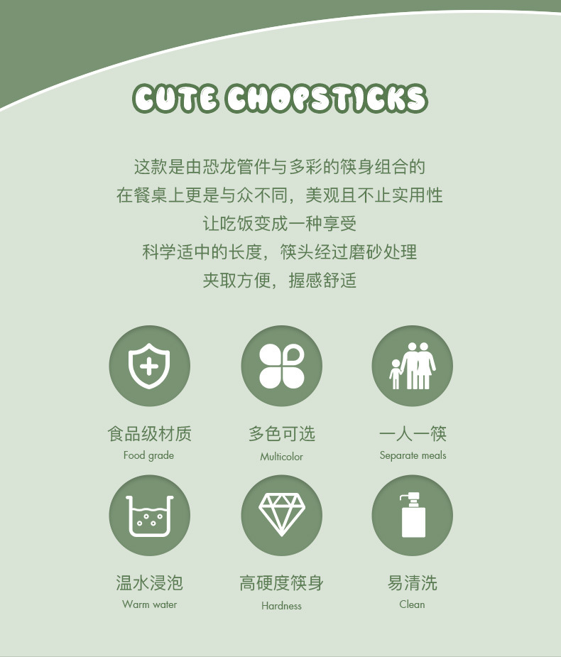 children's dinosaur chopsticks green 1 pair