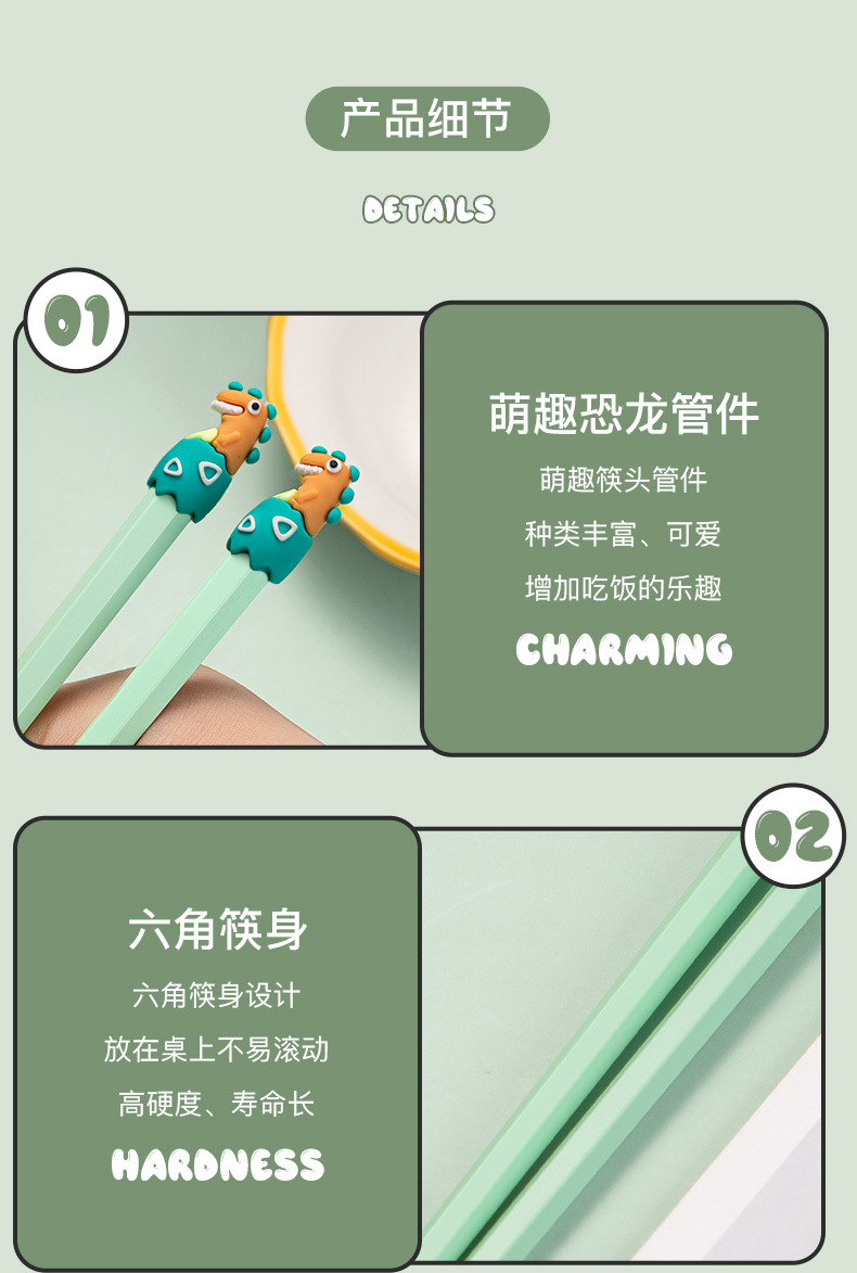 dinosaur chopsticks 4 pairs (adult white + adult green + children yellow + children pink