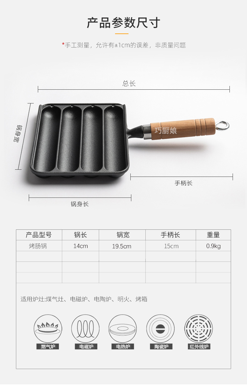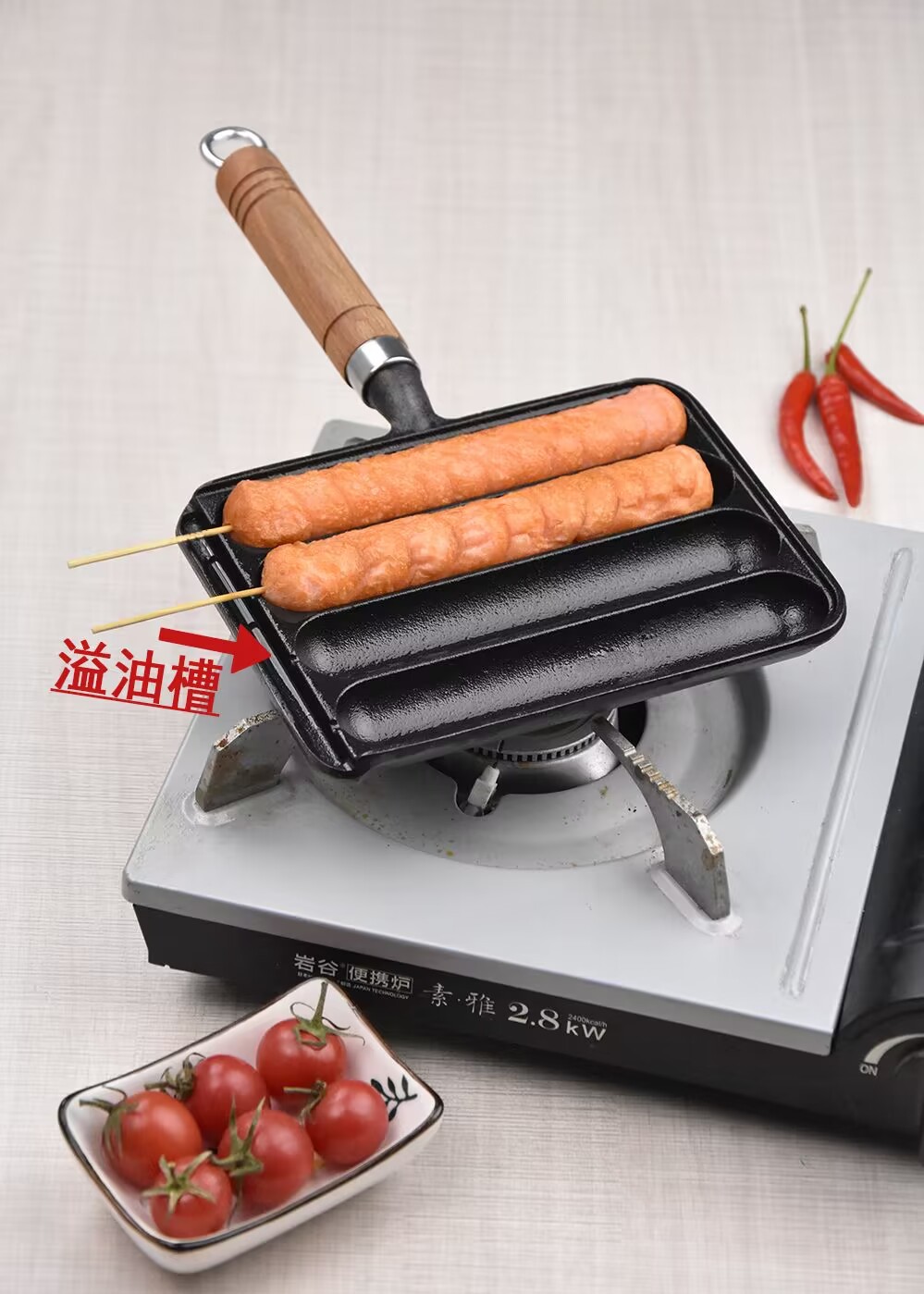 two-in-one roasted sausage egg frying pan (oil brush +40 bamboo sticks)