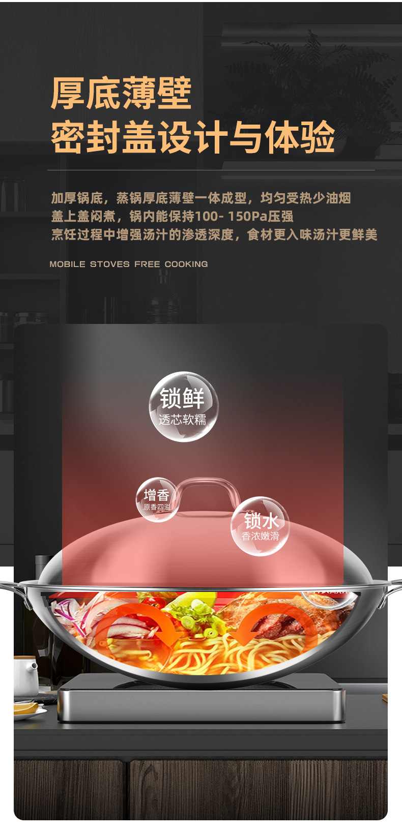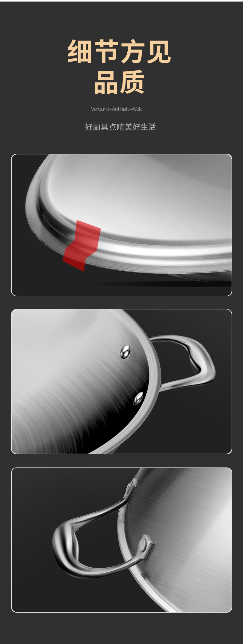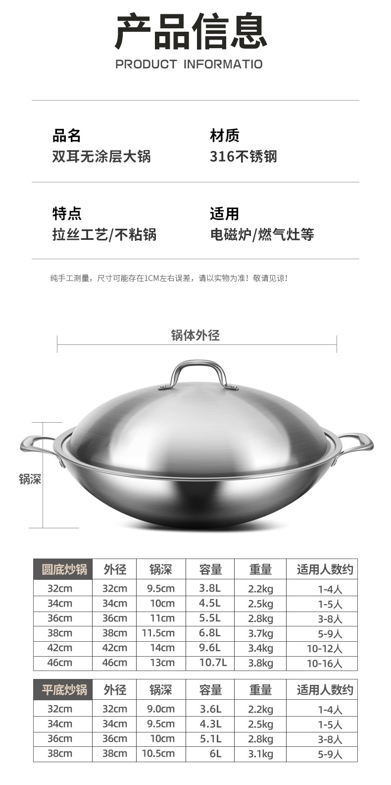 34cm round bottom wok + steamer [316 steel refused chemical coating]]
