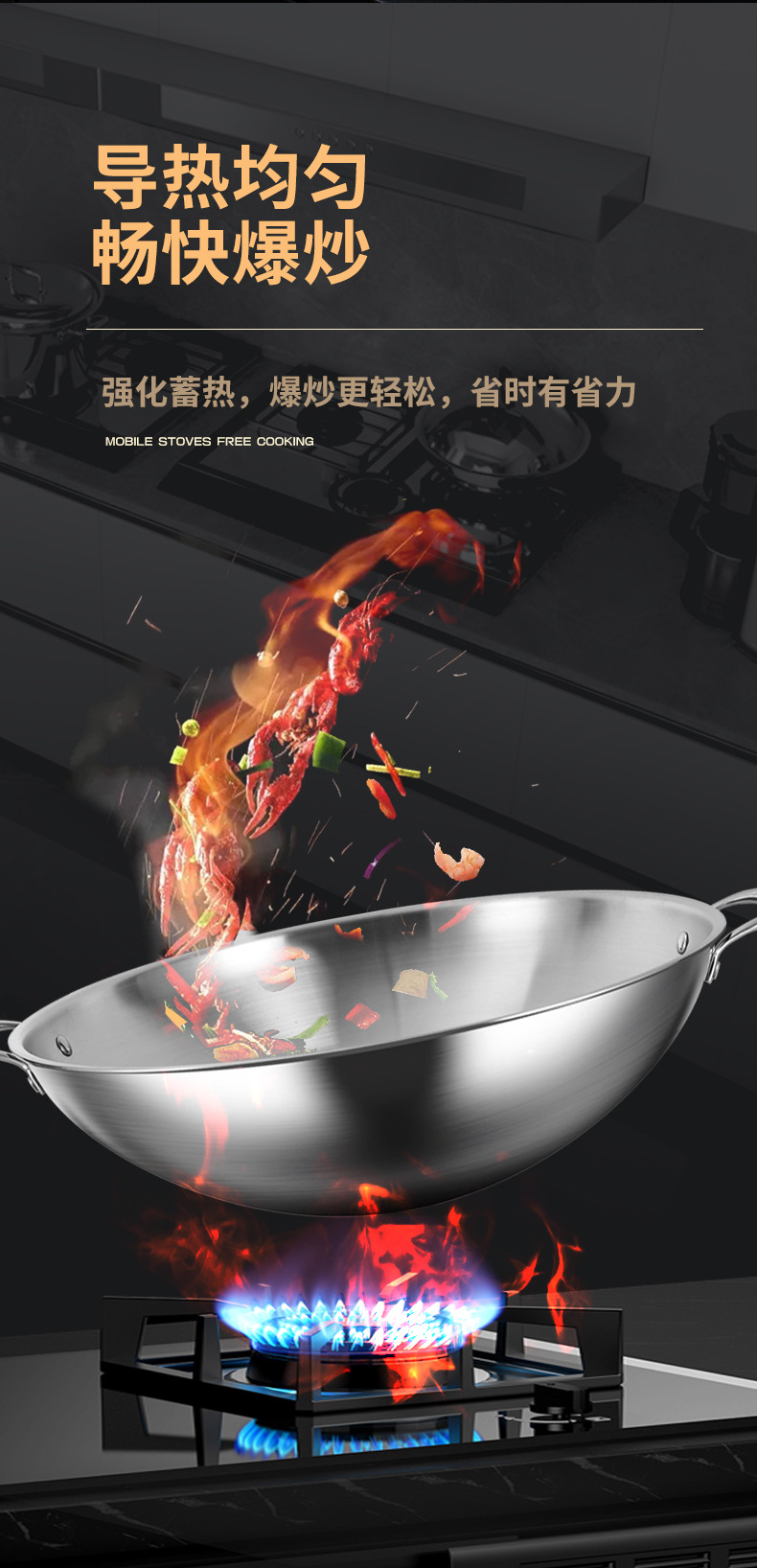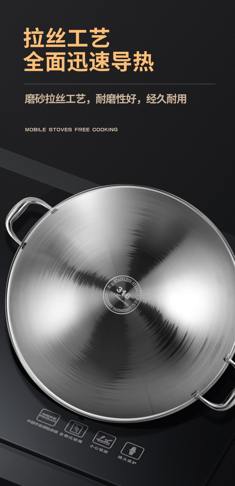 36cm flat bottom wok + steamer [316 steel refused chemical coating]]