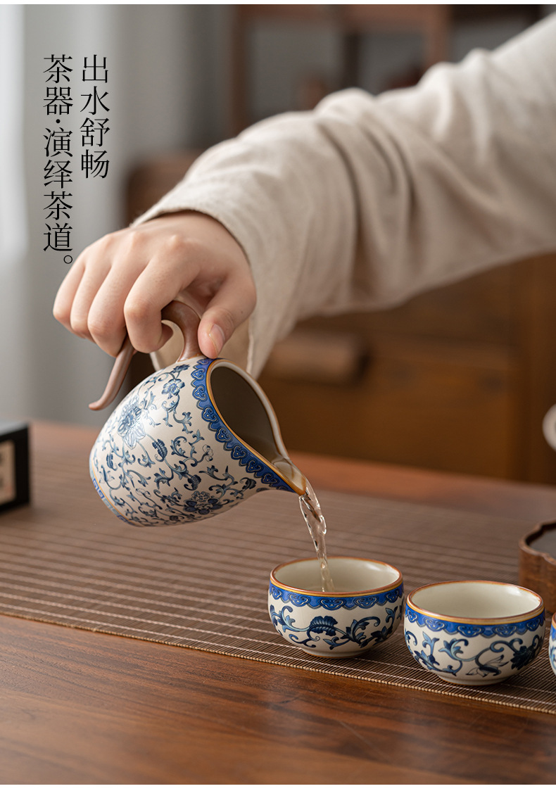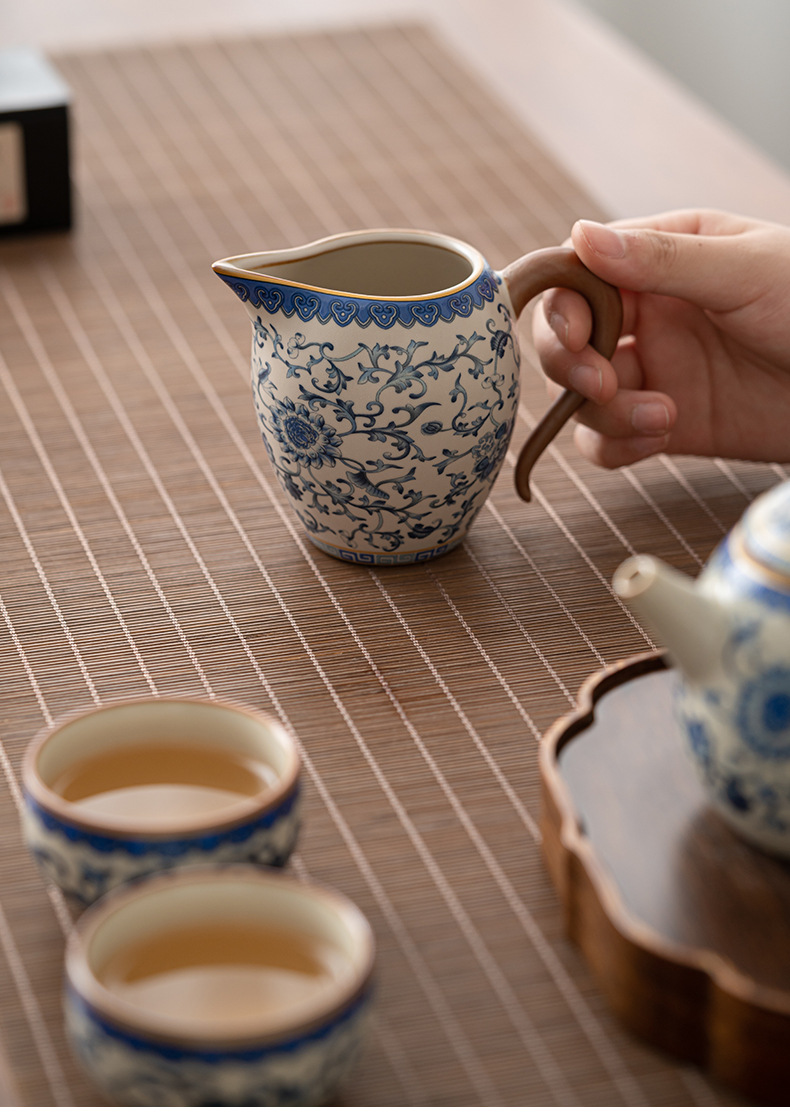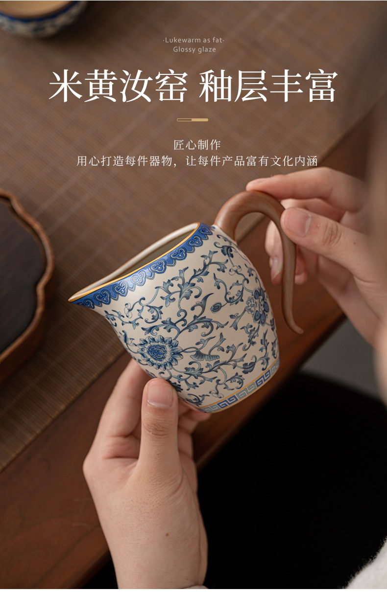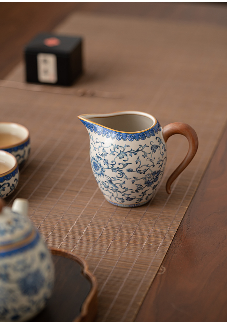 beige ru ware-pitcher [interlock branch lotus]]