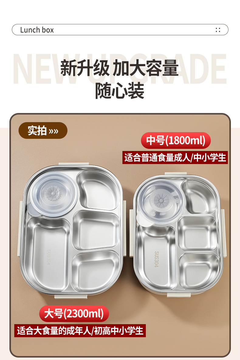 2300ml beige five grids] lunch box + anti-scald soup bowl