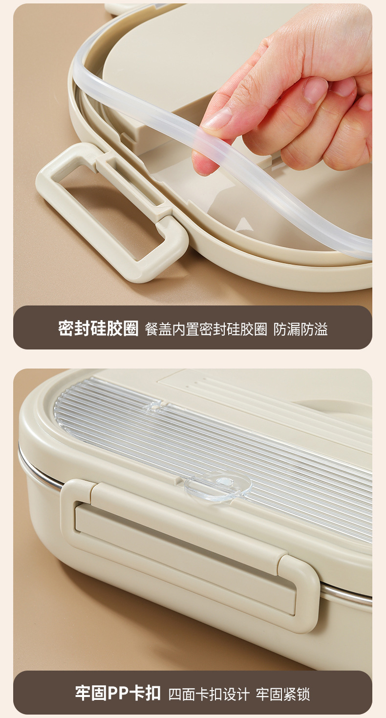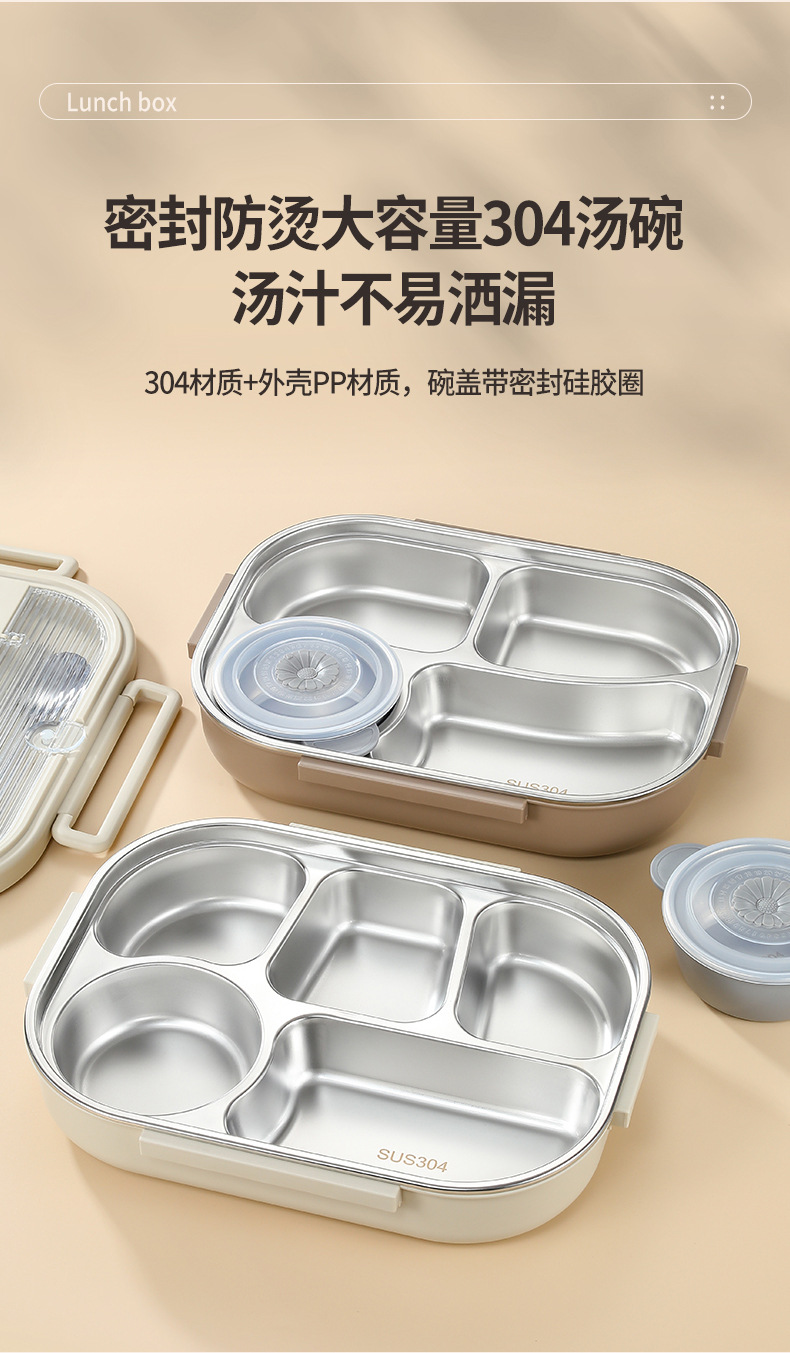 2300ml beige four grids] lunch box + anti-scald soup bowl