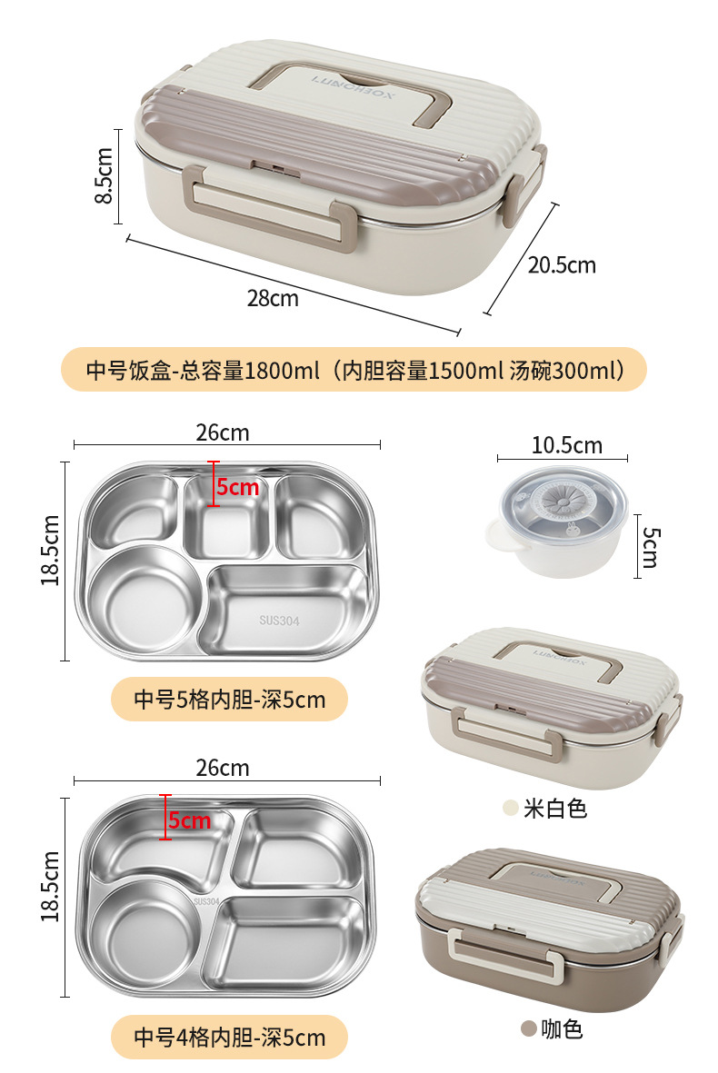 1800ml beige five grids] lunch box + anti-scald soup bowl