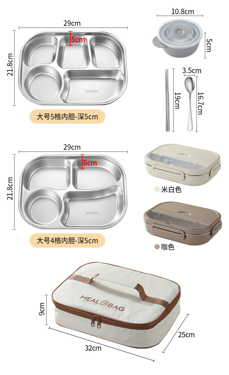 2300ml beige five grids] lunch box + anti-scald soup bowl + tableware + thermal bag