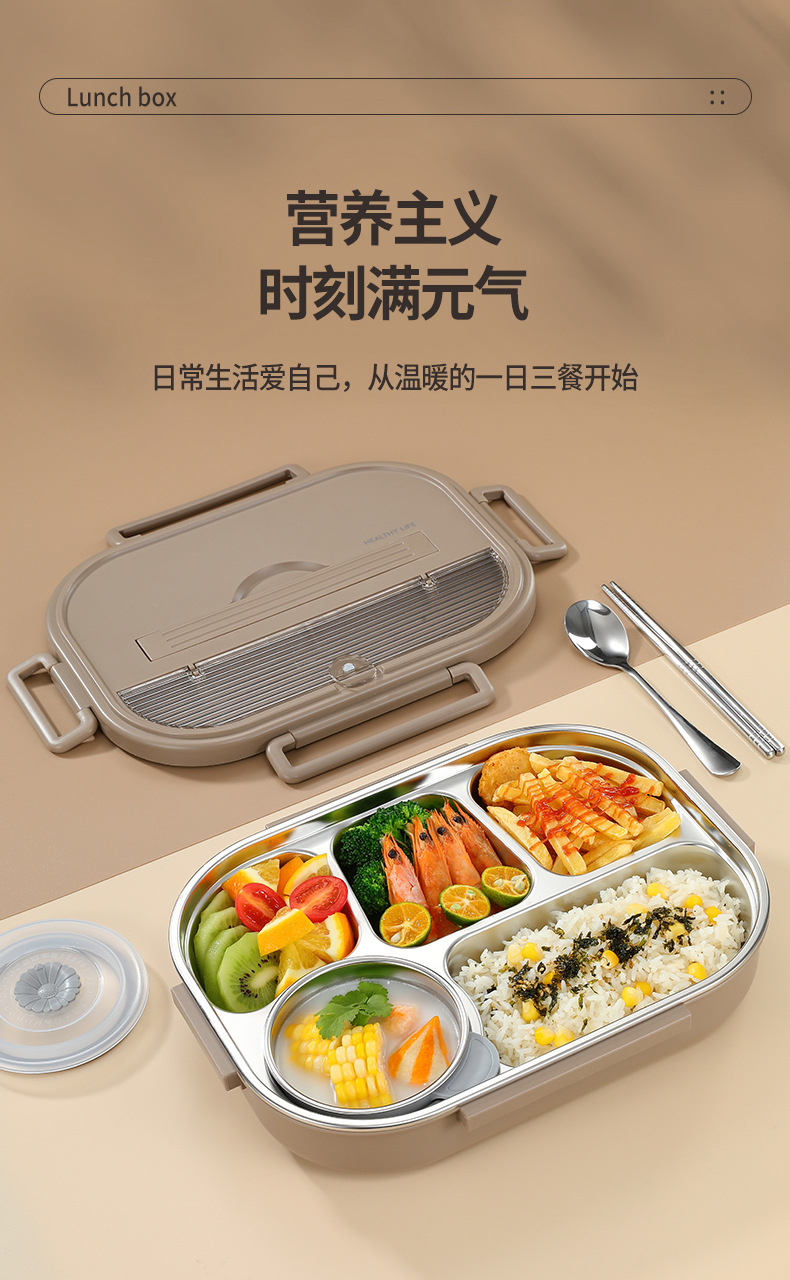 1800ml brown [five grid] lunch box + anti-scald soup bowl + tableware