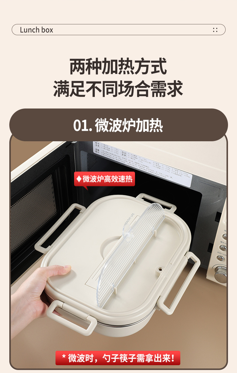 1800ml beige four grids] lunch box + anti-scald soup bowl