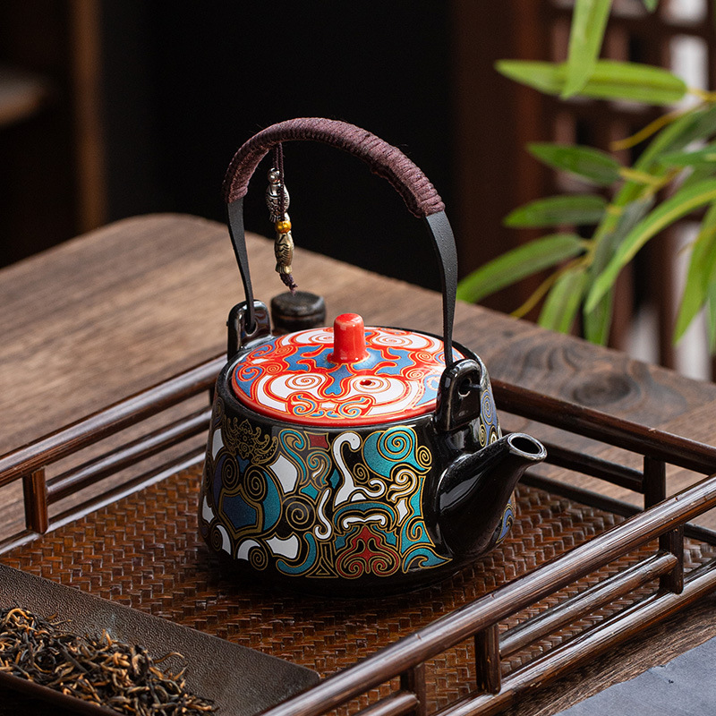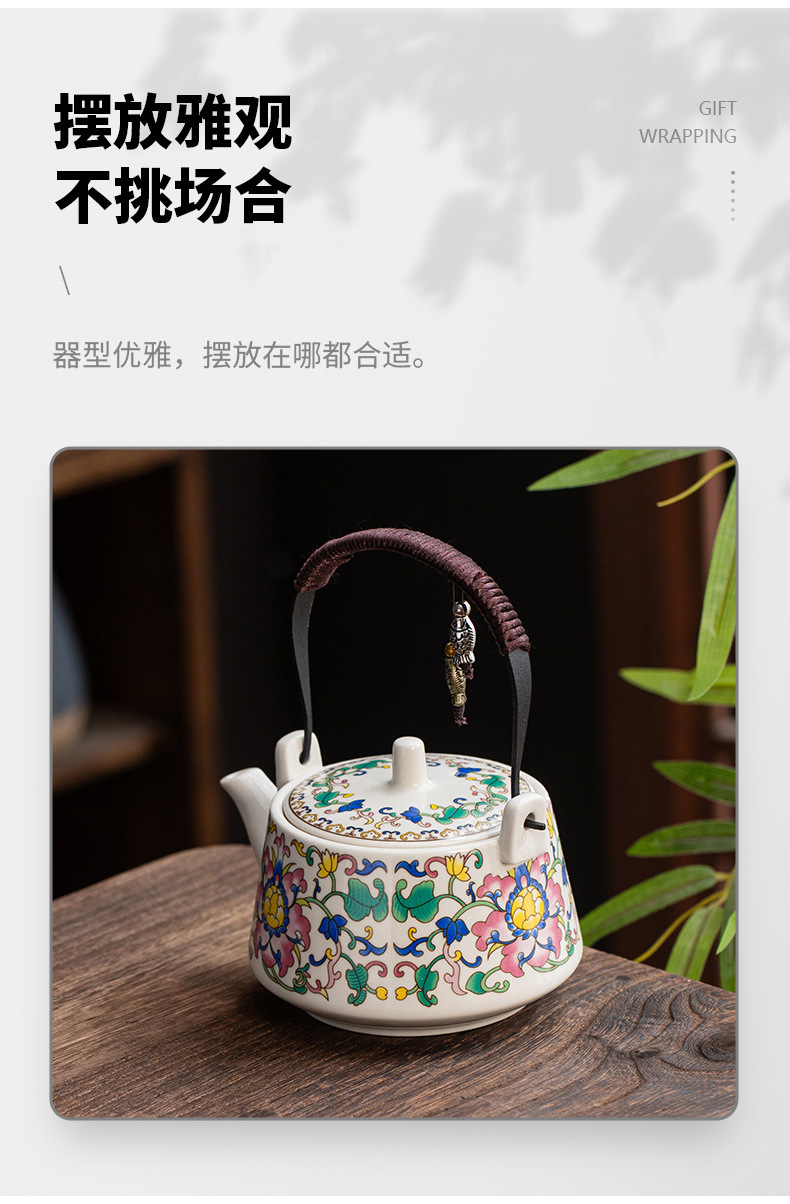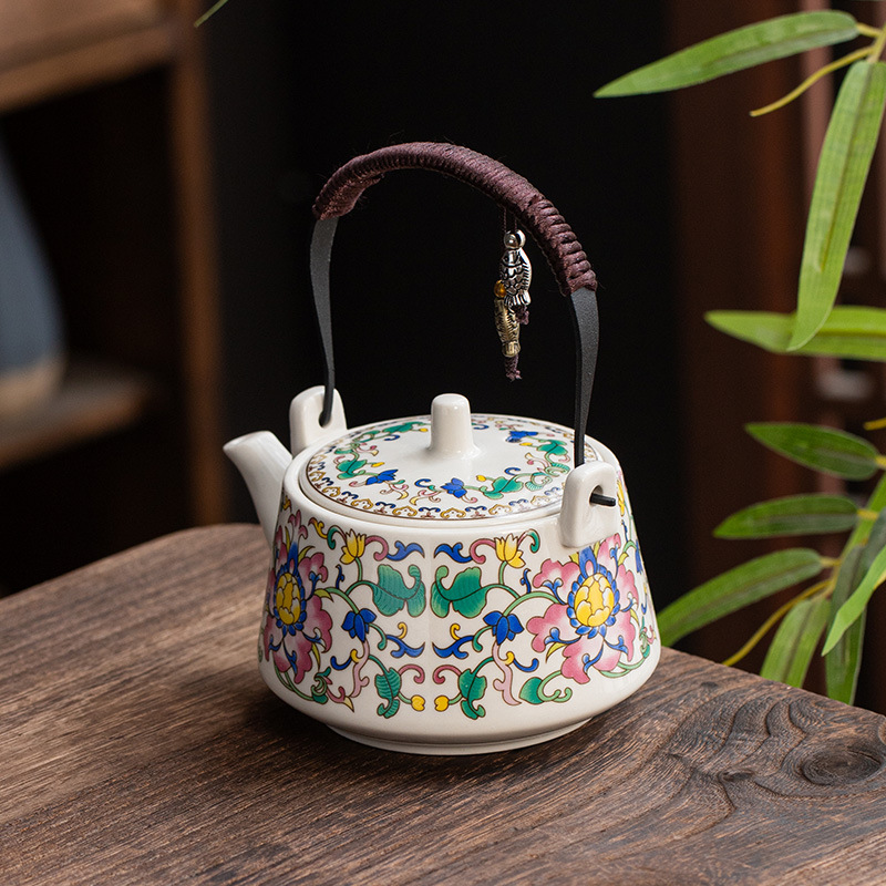 huang ru (pisces) loop-handled teapot-colorful flowers