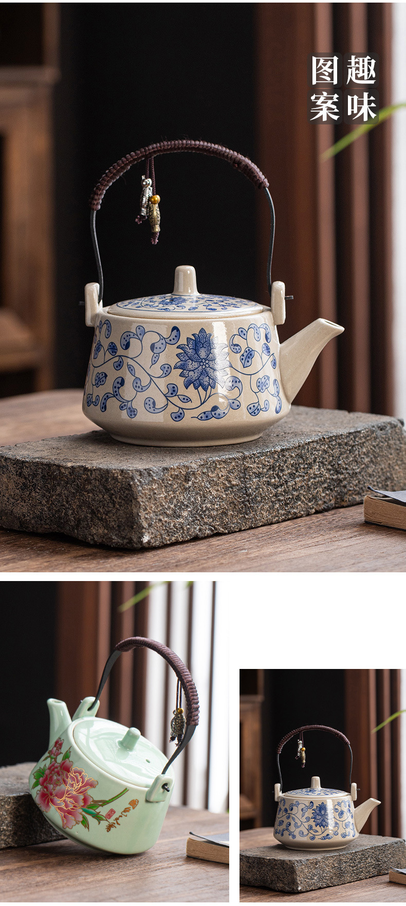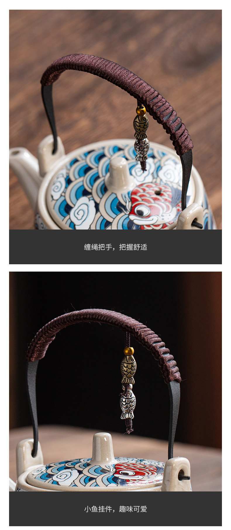 malt huangjing word loop-handled teapot-hemp rope