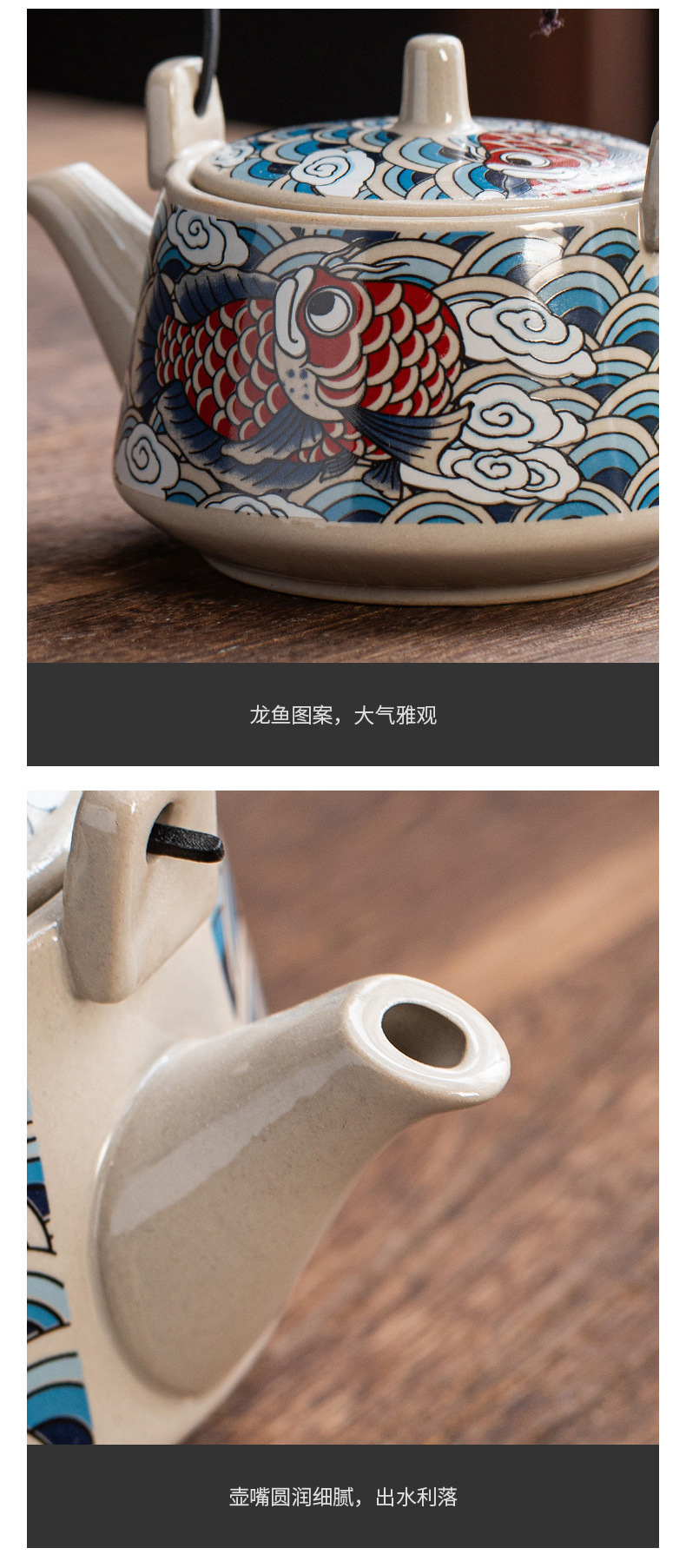 malt huangxiang dragon playing beads-(pisces) loop-handled teapot
