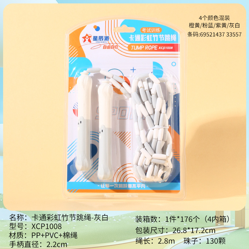 xcp1026 cartoon rainbow bamboo skipping rope (gray and white)