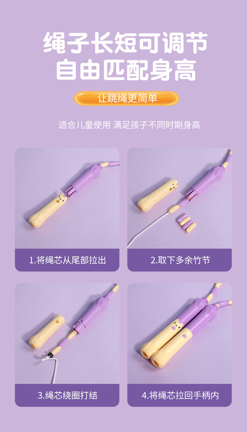 xcp1026 cartoon rainbow bamboo rope skipping (purple and yellow)