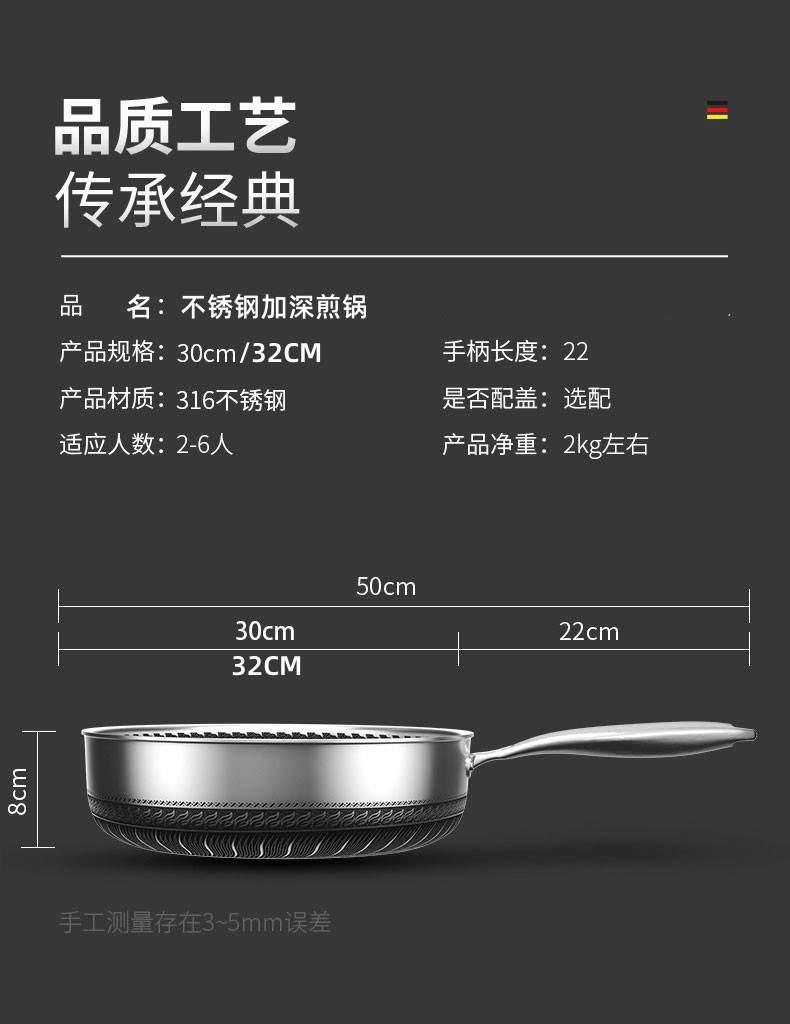 [8cm deep frying pan] 32cm without lid