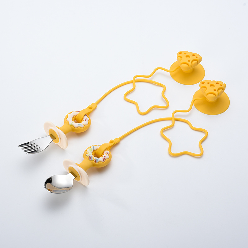 yellow donut spoon fork with cheese sucker chain