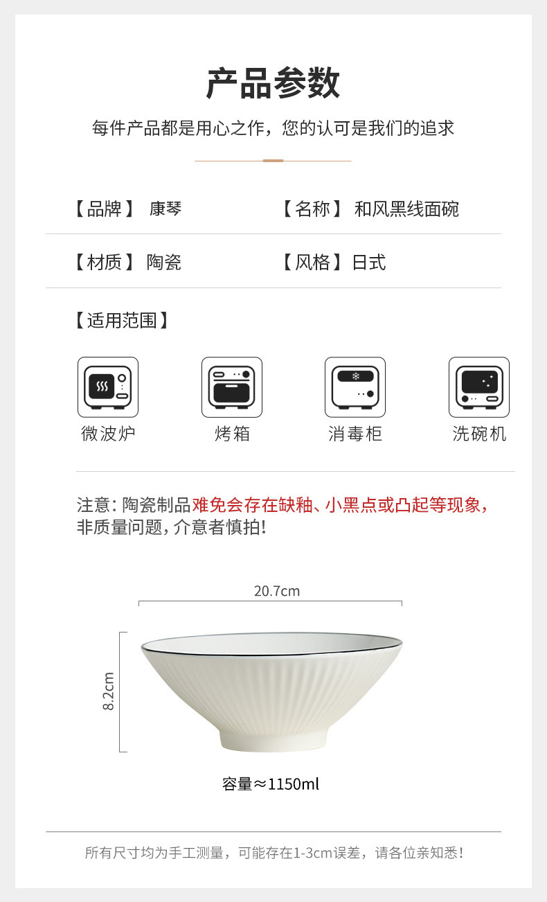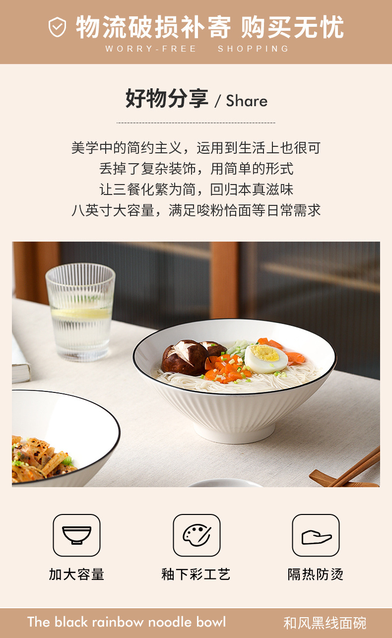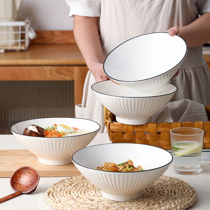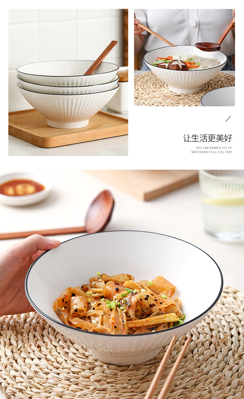 black line vertical pattern rain-hat shaped bowl