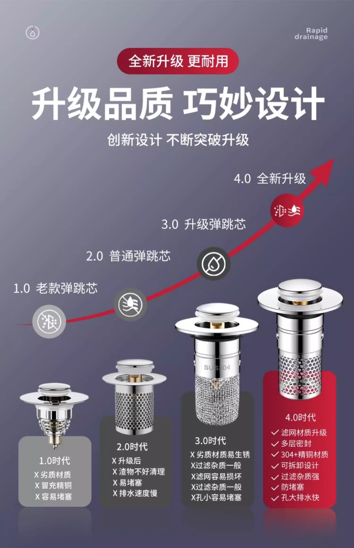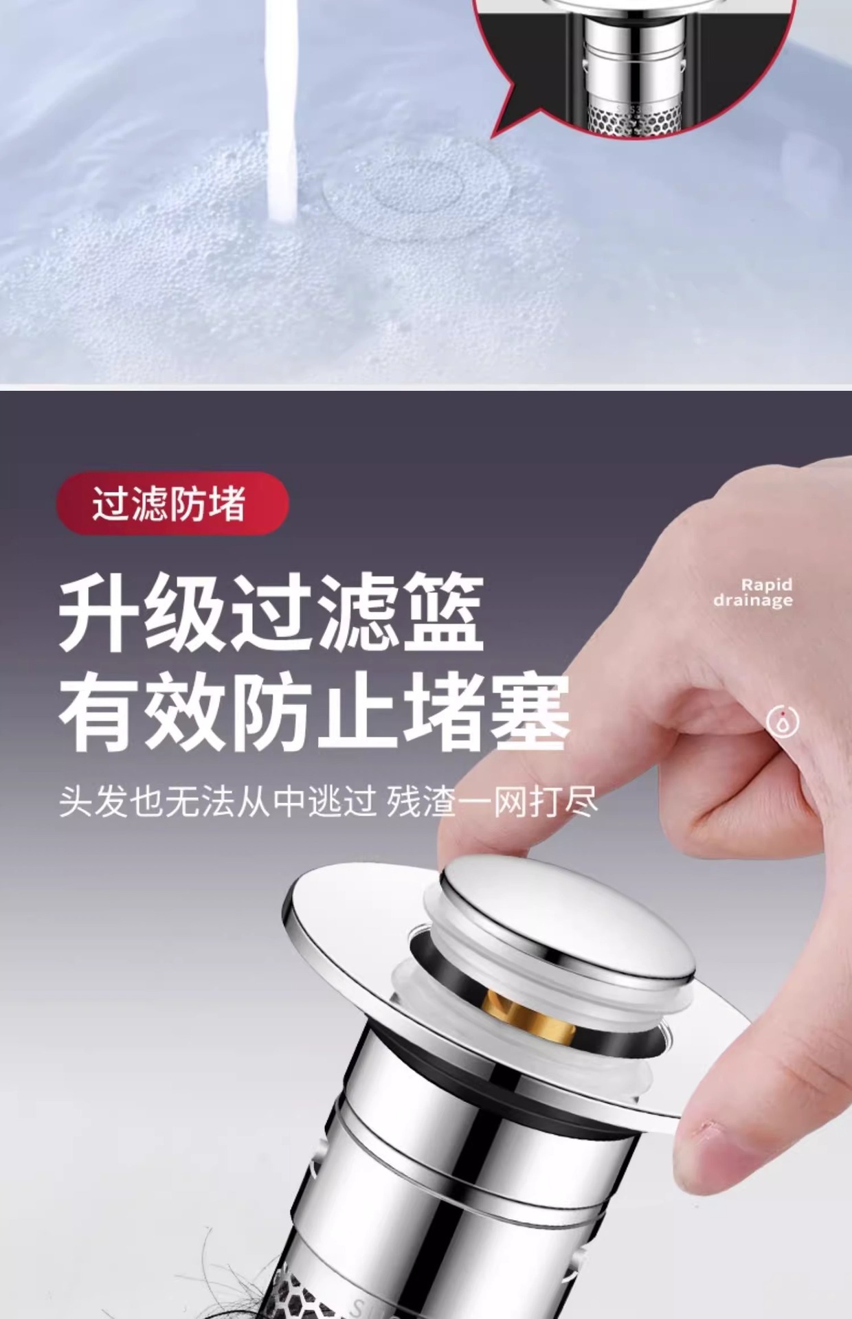 upgrade large filter screen [double filter deodorant/fast drainage]]