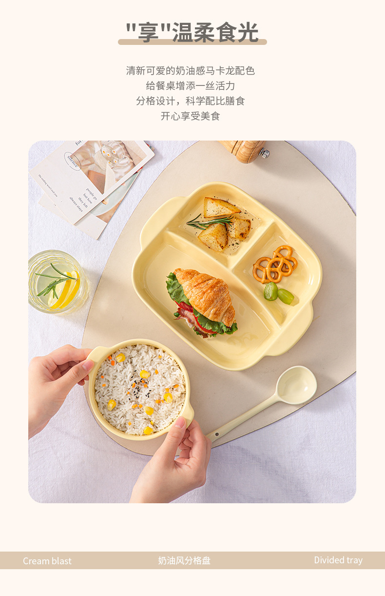 milk white food dispatch disk + spoon + bowl