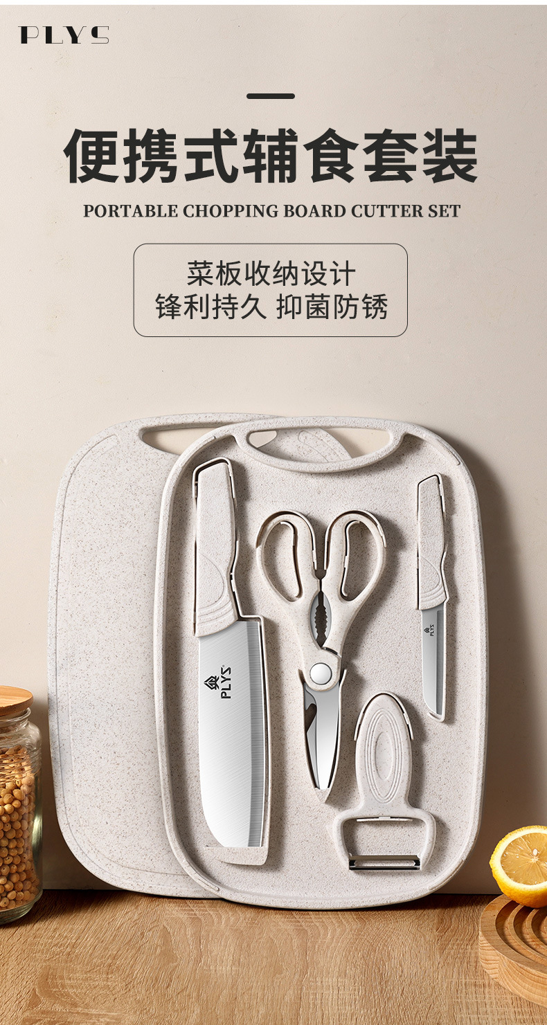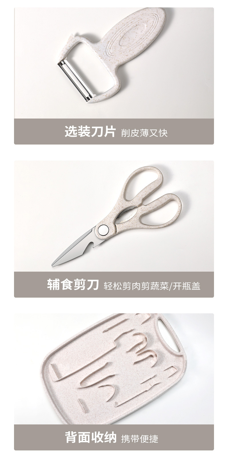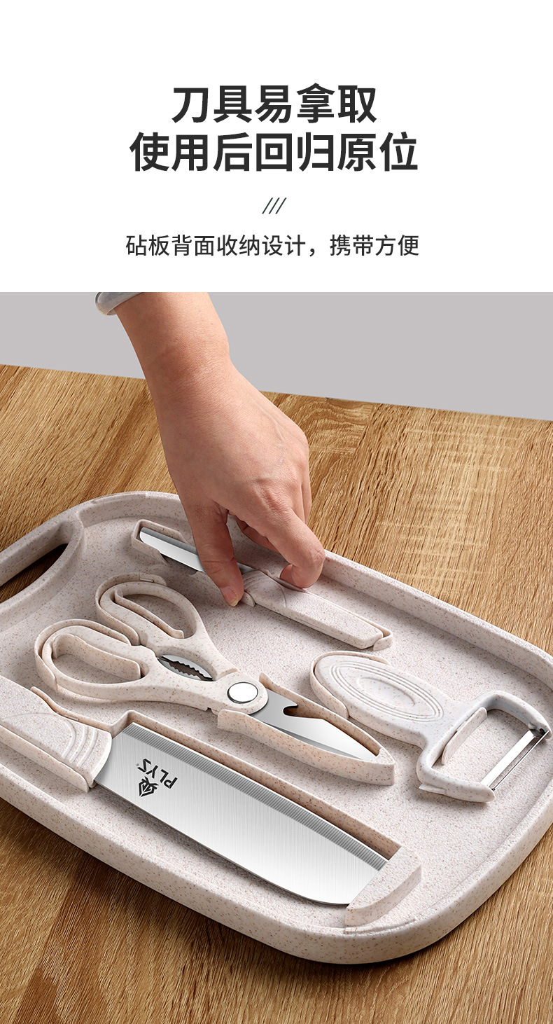 nordic beige [three-piece knife set + storage cutting board + food supplement spatula three-piece set]]
