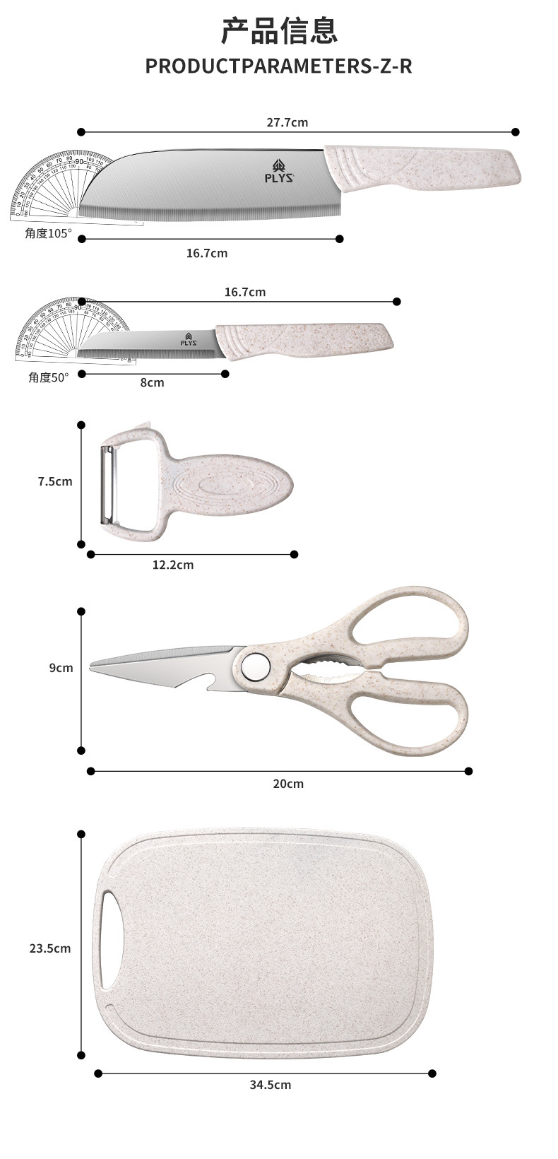 nordic beige [three-piece knife set + wheat cutting board + spatula three-piece set]]