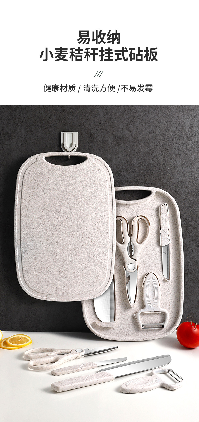 nordic beige [three-piece knife set + wheat cutting board]]