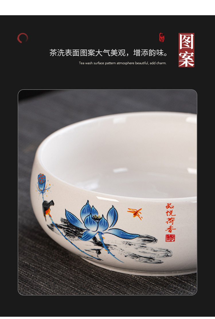 small size jade porcelain tea basin-ink lotus pond