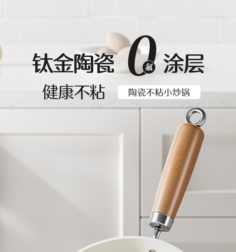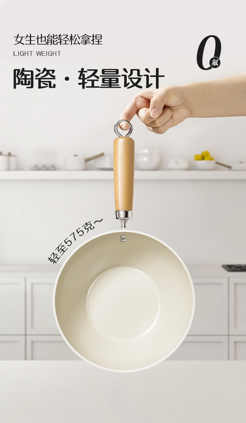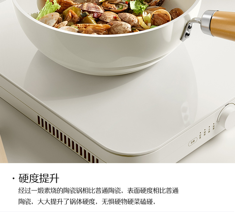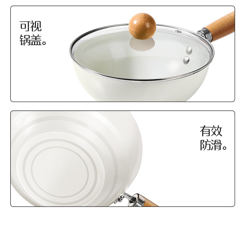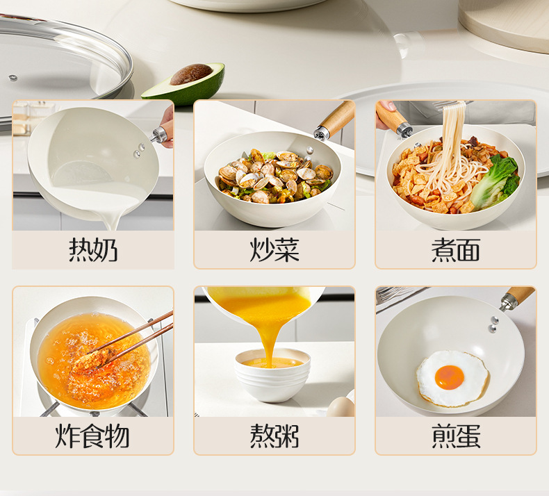 20-inside and outside white wok + transparent white g cover + solid wood silicone shovel