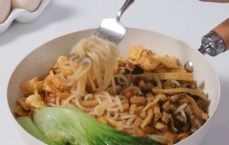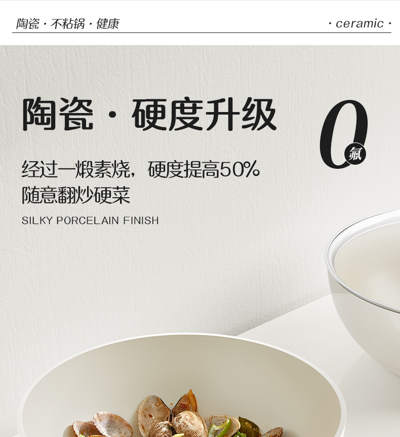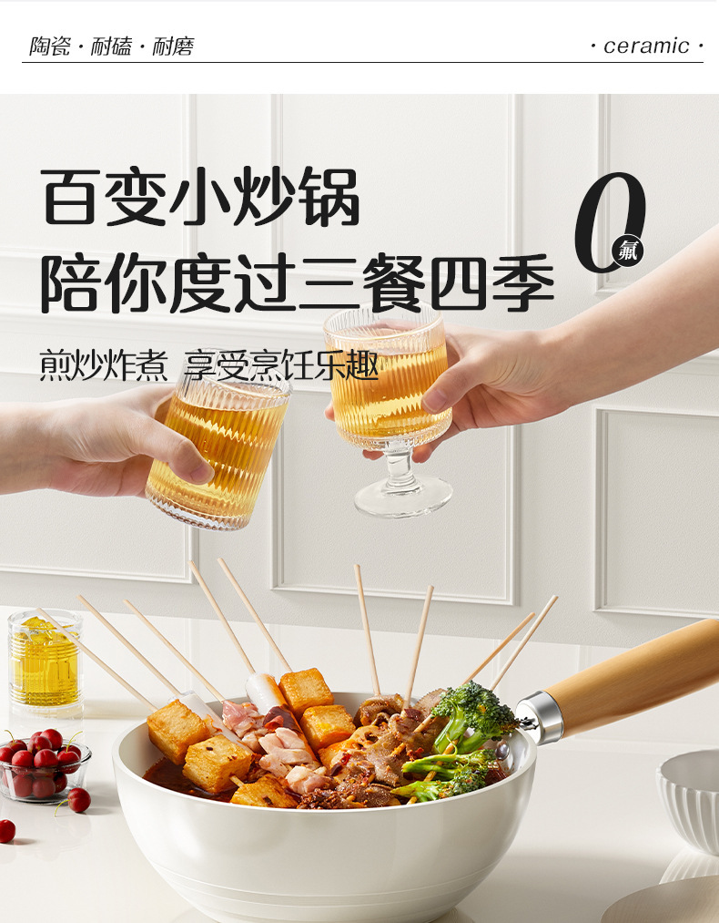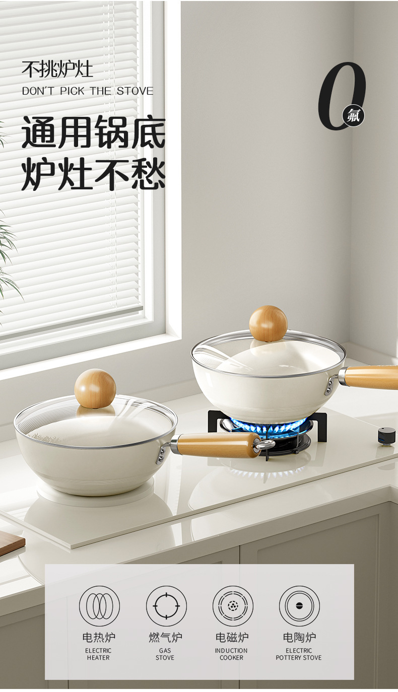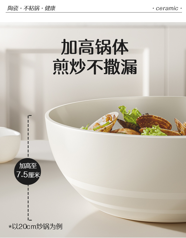 20-inside and outside white wok + transparent white g cover + solid wood silicone shovel