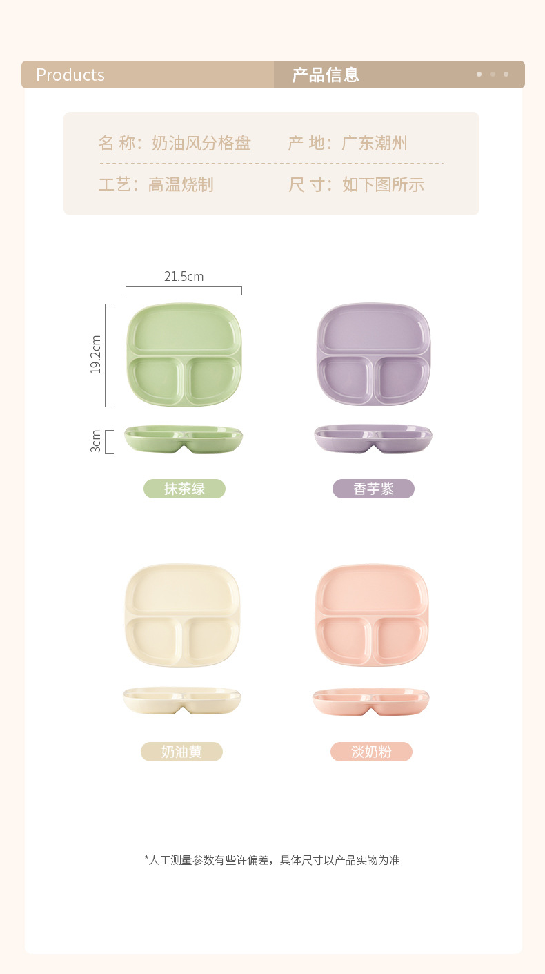 8.5-inch three-grid square plate-cream yellow
