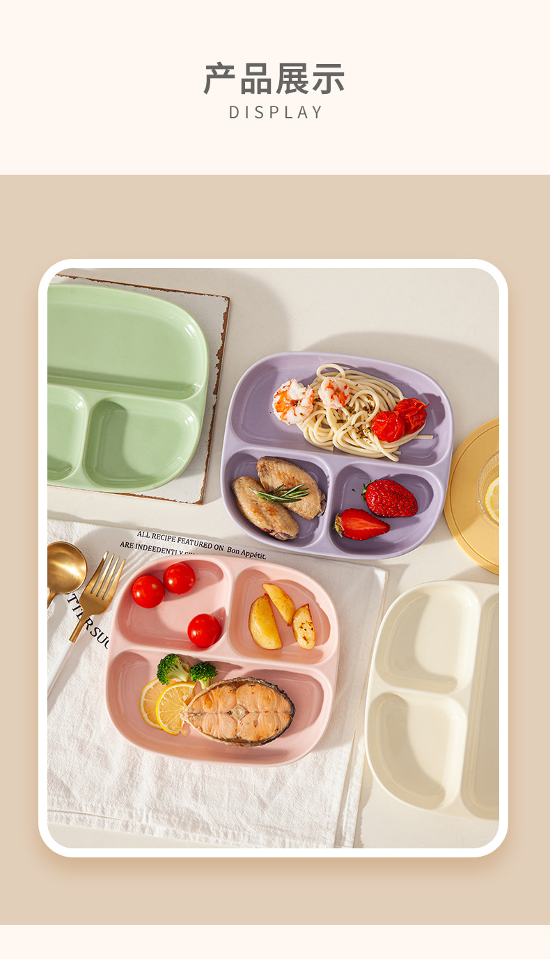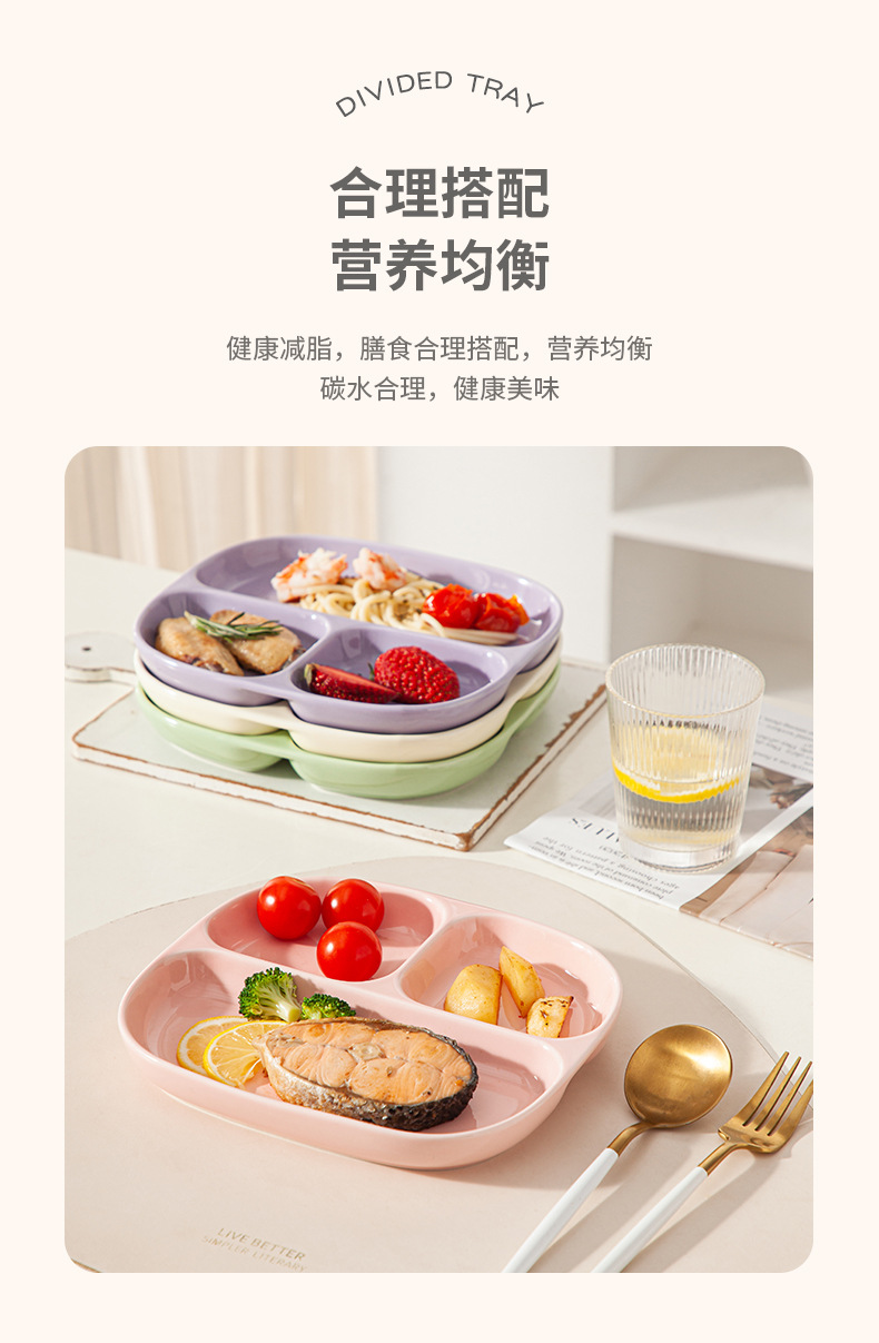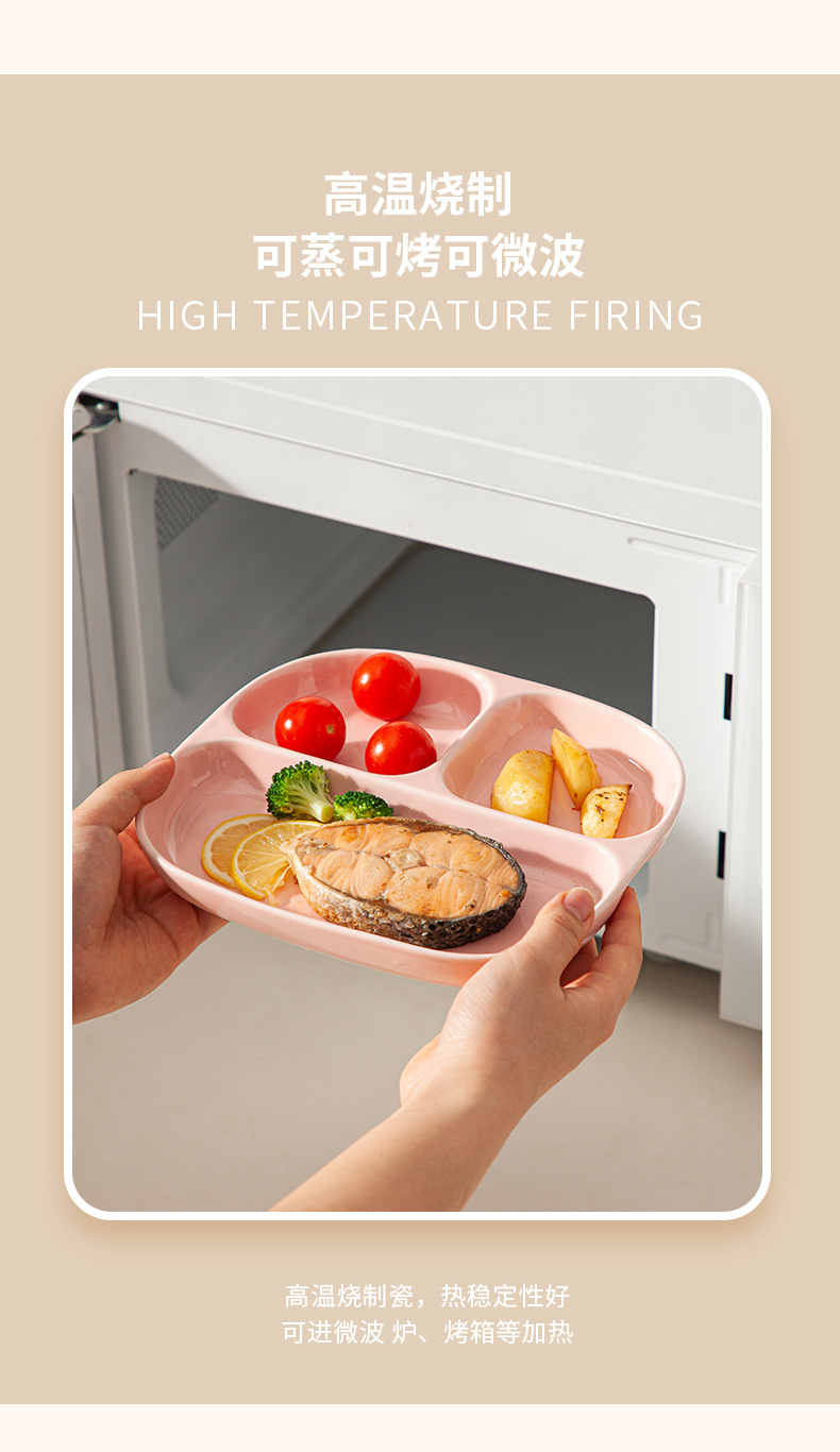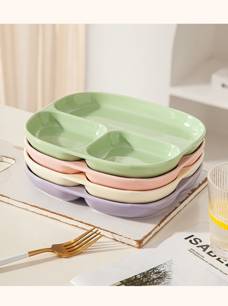 8.5-inch three-grid square plate-light pink